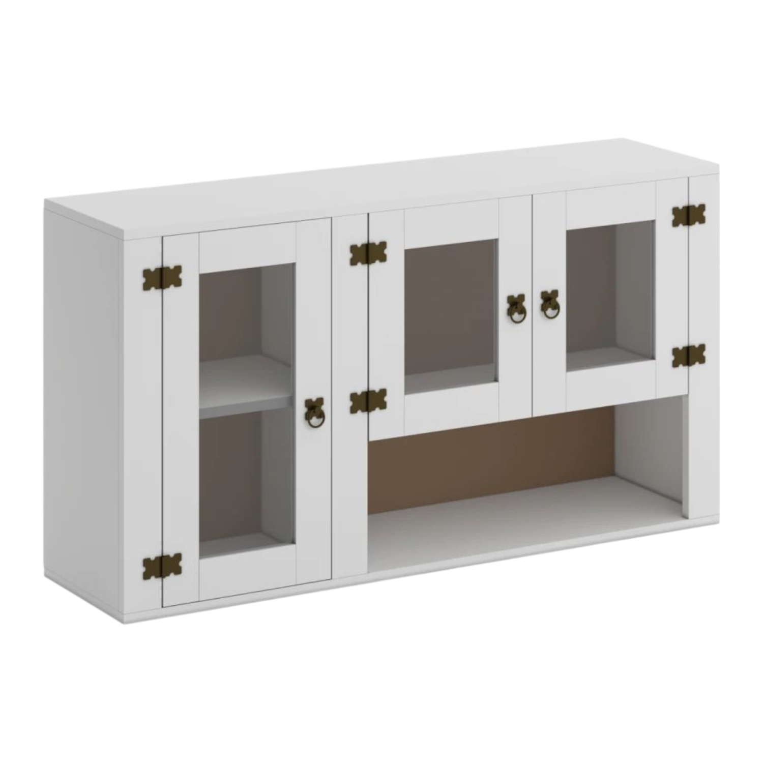 Aereo 3 Puertas con Vidrio 1.20cm MEX021 Blanco Código: Mex021 / 2001 Color: Blanco – Dimensiones totales – Alto: 62 cm Largo: 120 cm Profundidad: 30 cm – Material madera maciza de pino