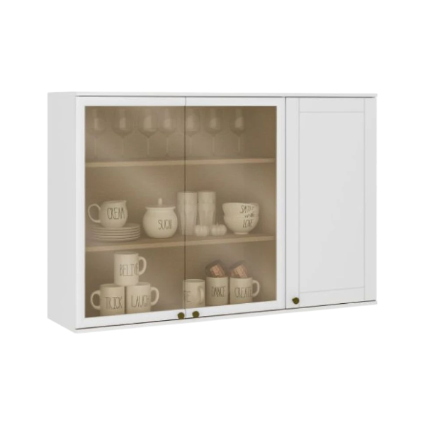 Aereo Americana Con Vidrio 120cm Blanco 260031220 Código: 2366 Color: Blanco Bisagras de 35MM con cierre slow motion y tiradores en Zamac. Puertas con vidrio. Dimensiones Altura: 80 cm Ancho: 120 cm Profundidad: 30 cm 100% MDF