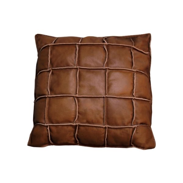 Almohadón Cuero 48×48cm Fio Código: 0000359-17005 Color: Marrón Medidas: 0,14×0,48×0,48cm Compasión: Fibra sintética y 100%Cuero