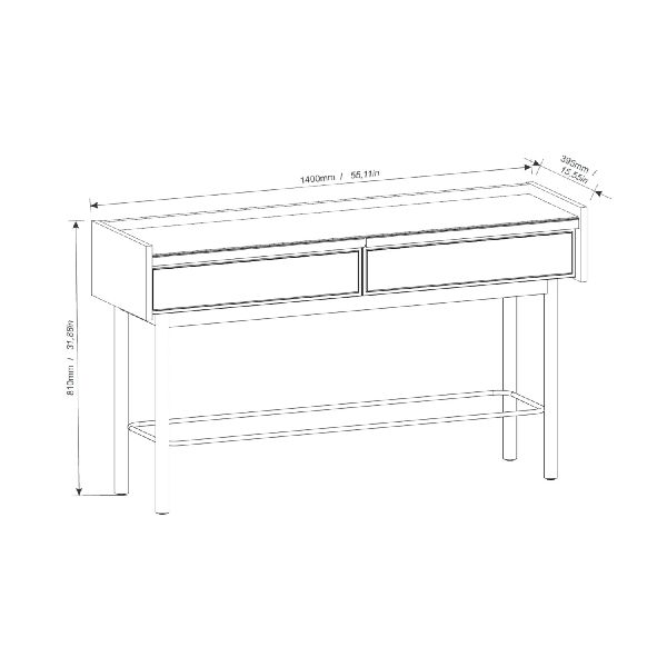Aparador Dune 2 Cajones Off White/Nature 59133 Código: 0000058-3468 – Dimensiones totales – Altura: 81 cm Ancho: 140cm Profundidad: 39.5cm – Materiales – Madera de Tauarí, madera semipesada MDF Bisagras con cierre suave. Incluye cajón interno con guías telescópicas.