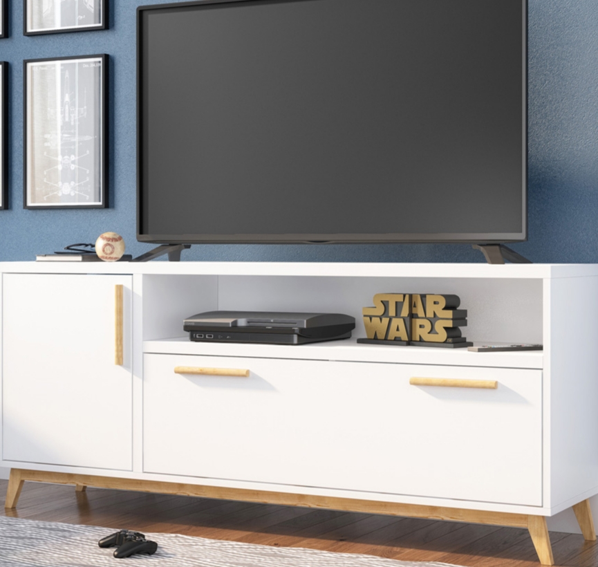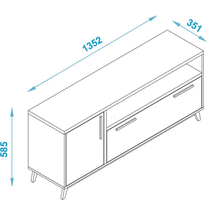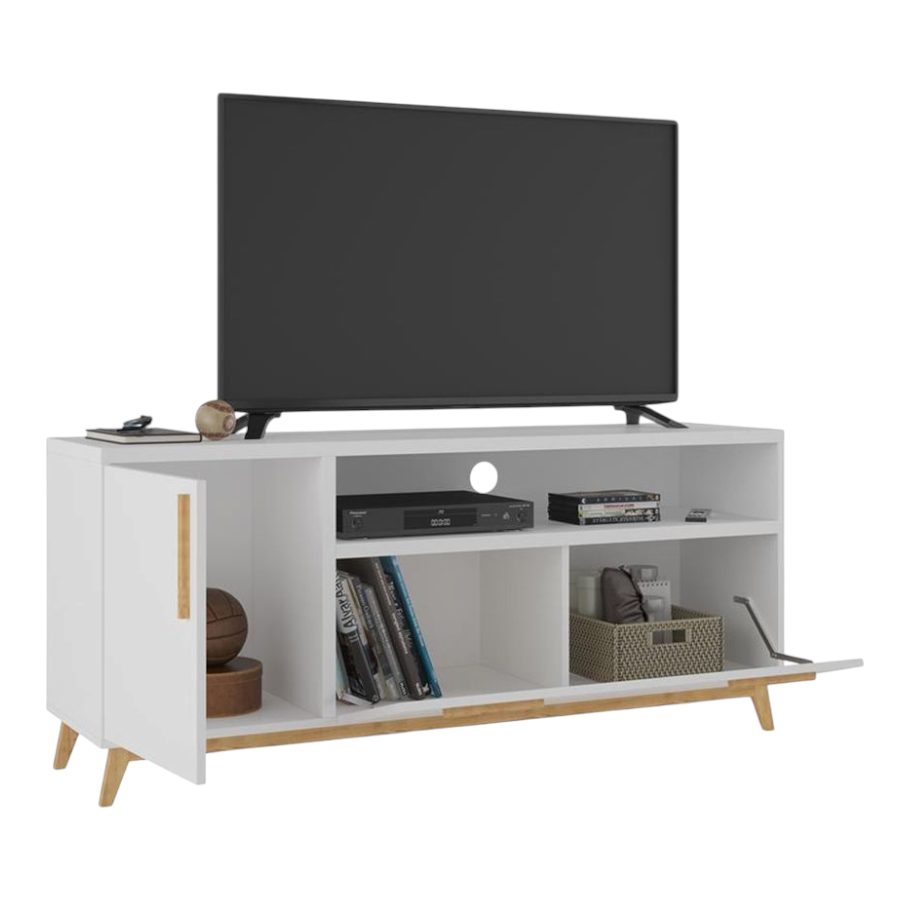 Aparador Rack H05 Blanco Medidas: Alto: 58 cm Largo: 135 cm Prof: 35 cm Color: Blanco Adecuado para tv hasta 60″ 2 puertas Confeccionado en placa de MDP de 15 y 20 mm Terminacion BP mate Acabado interno de la misma calidad
