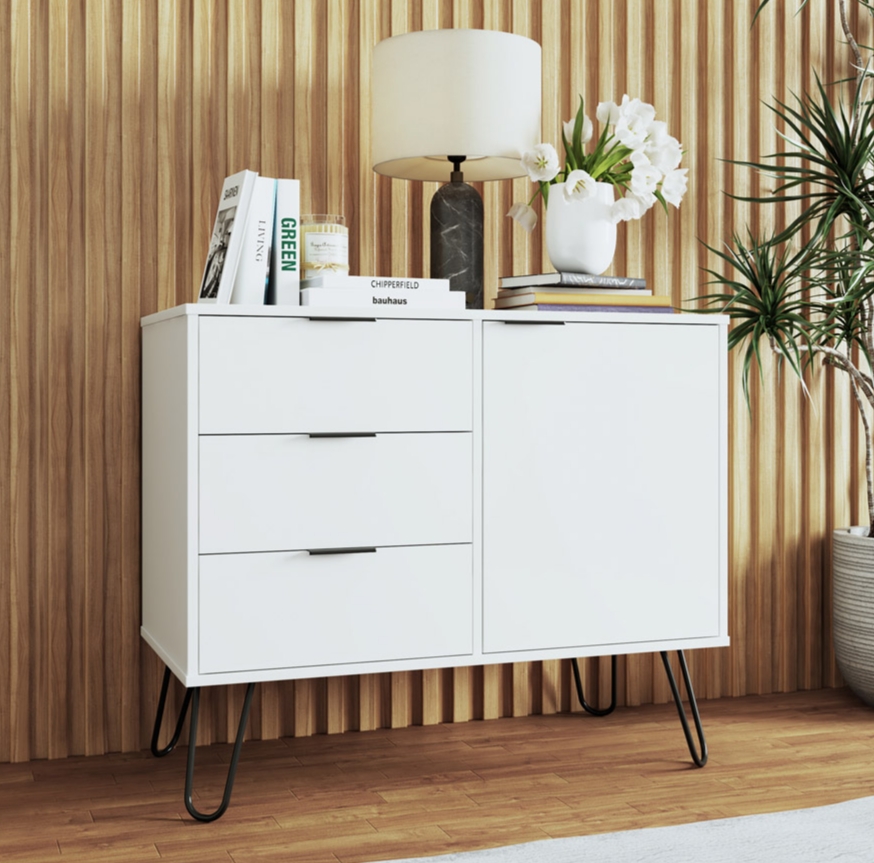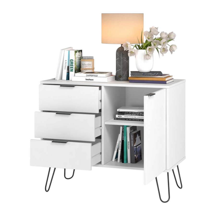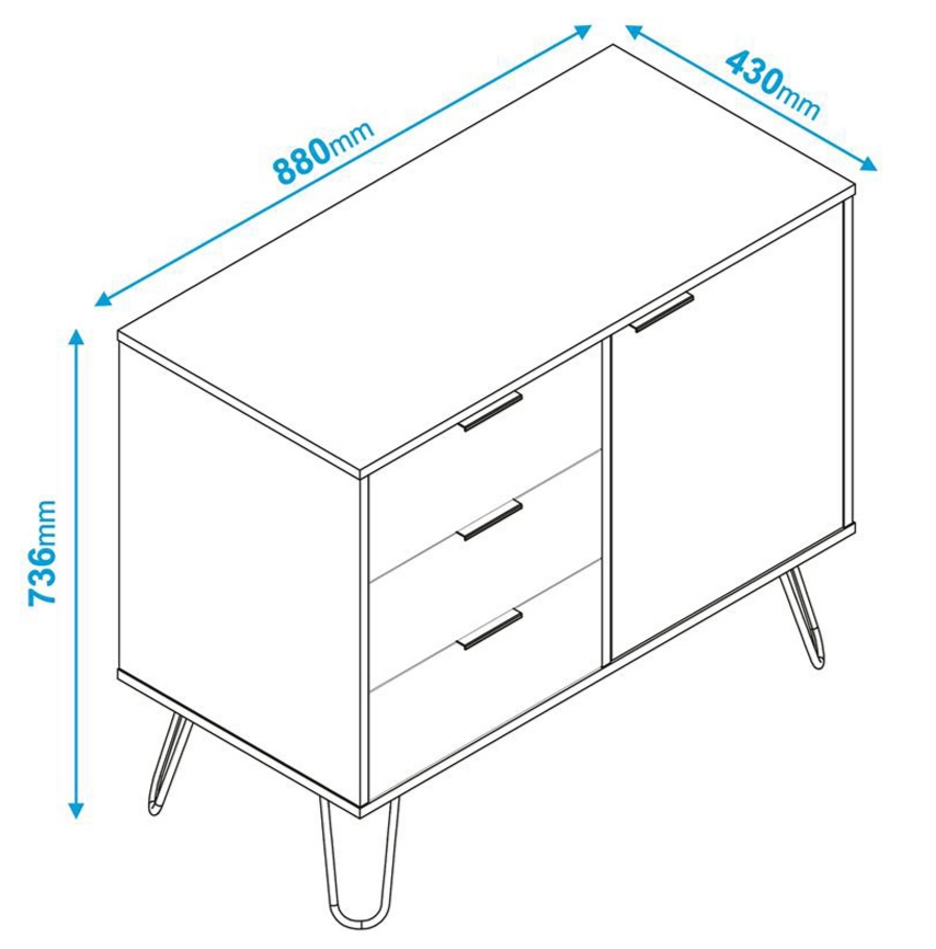 Armario Aparador BA81 Medidas: Alto: 74 cm Largo: 88 cm Prof: 43 cm 1 puerta con estante interno 3 cajones con rieles metalicos Confeccionado en placa de MDP