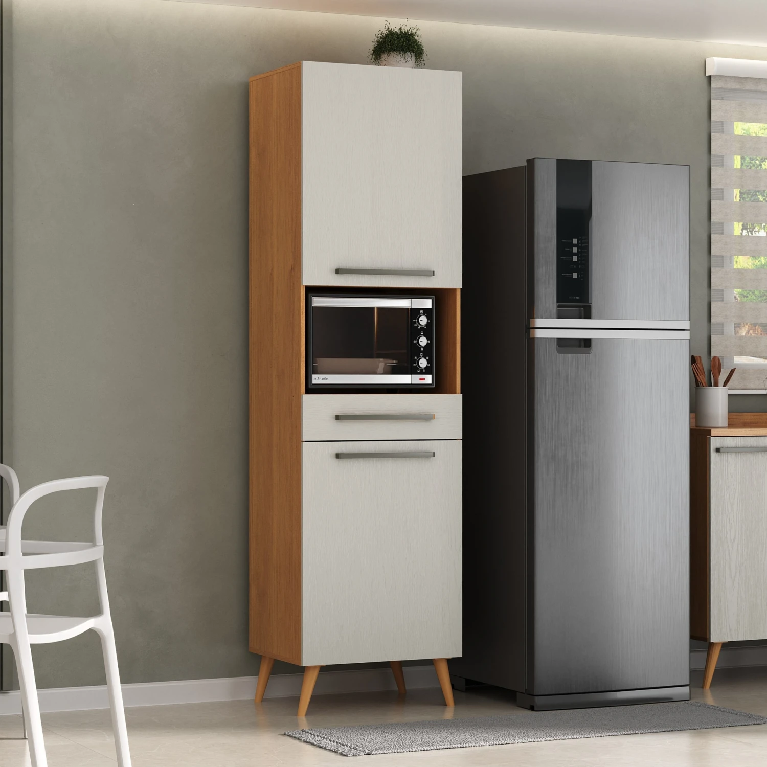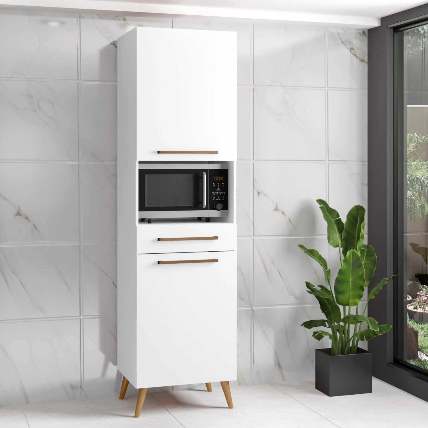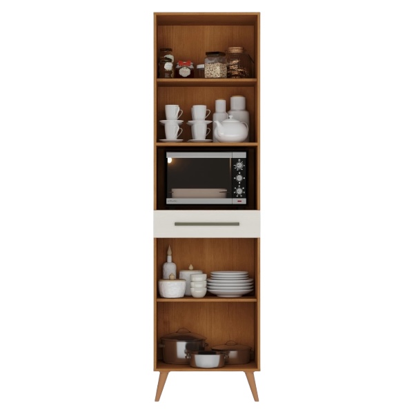 Armario para Microondas Linea Zambia Código: 0000155-3775 Medidas: Altura: 214.5 cm Ancho: 55.8 cm Profundidad: 46.3 Colores: Blanco/ Cinamomo