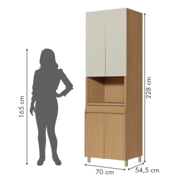 Armario para Microondas Simone Código: 500959- 4162 Medidas: Altura: 228 cm Ancho: 70 cm Profundidad: 55.5 cm Material 100% MDF