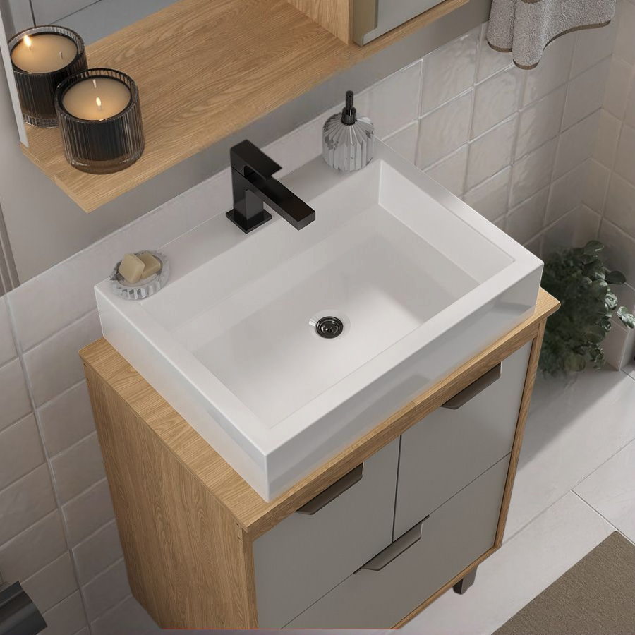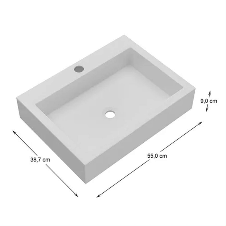 Bacha Pileta De Baño C550 Medidas: Alto: 9 cm Ancho: 55 cm Profundidad: 39 cm Color: Blanco. Confeccionado en loza sintetica de gran resistencia 1 agujero para la canilla 1 agujero para valvula