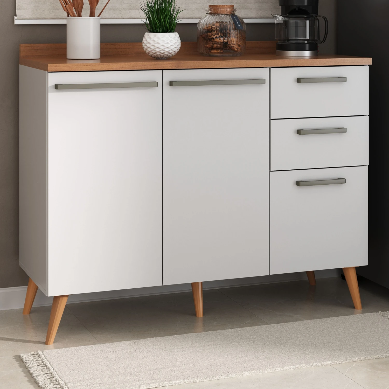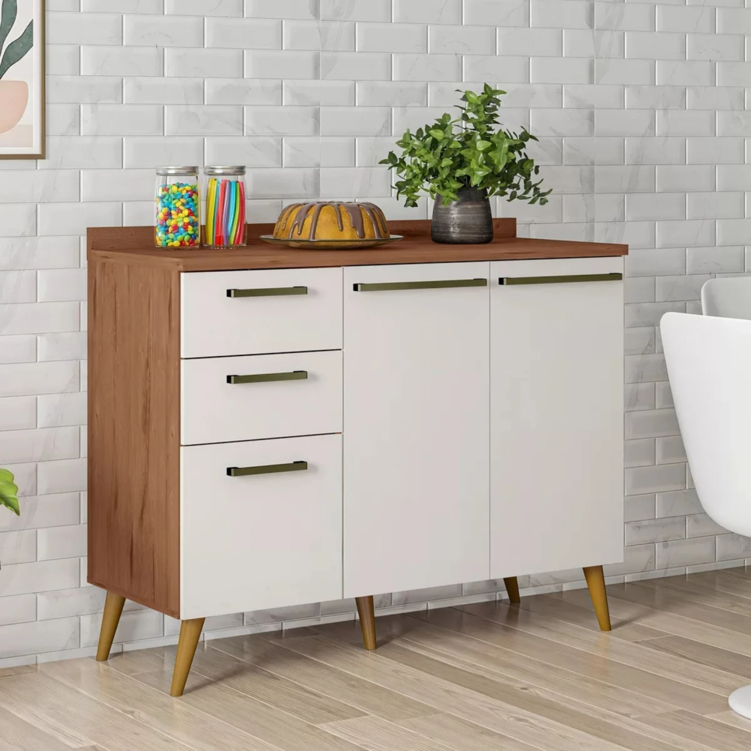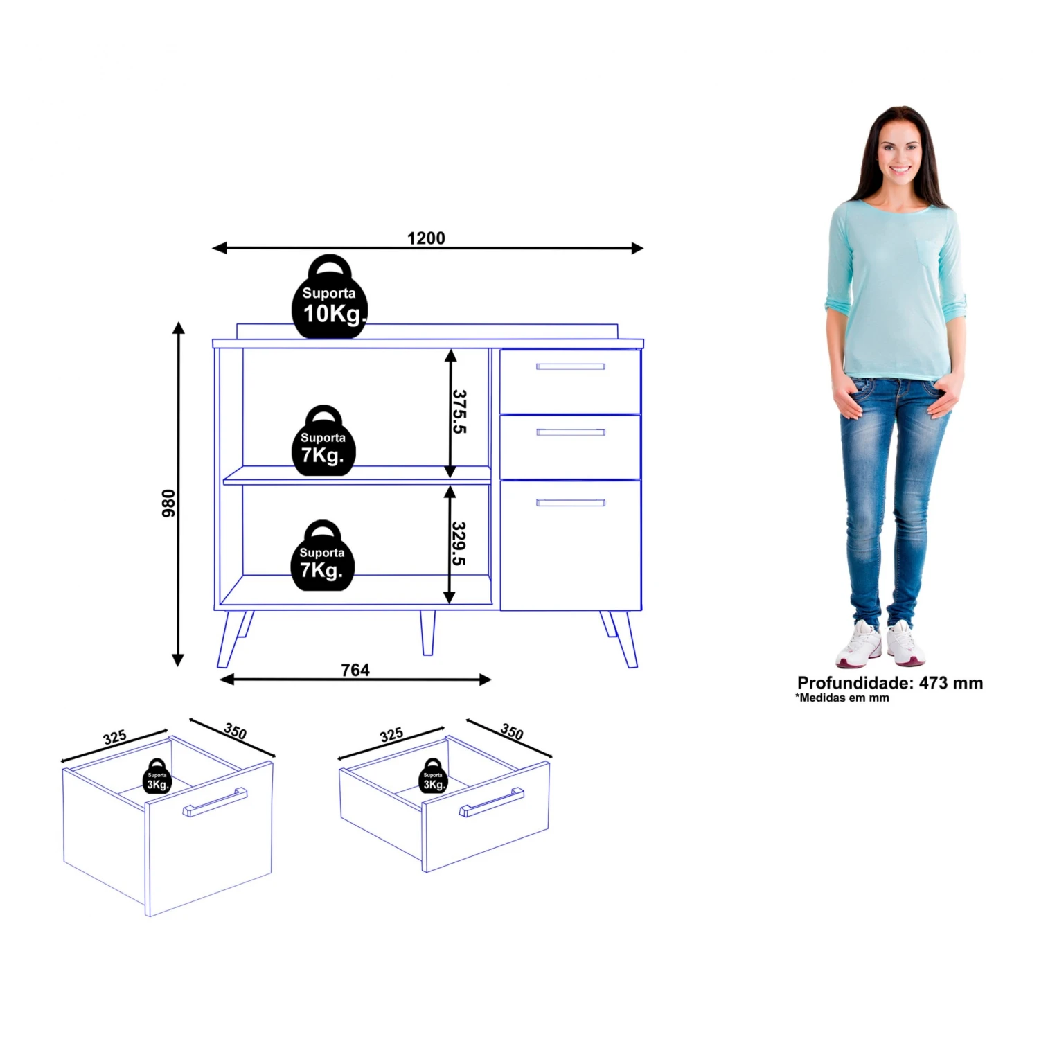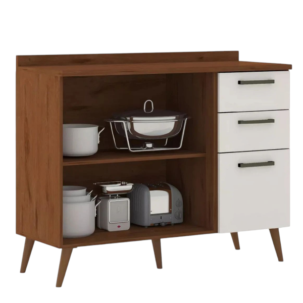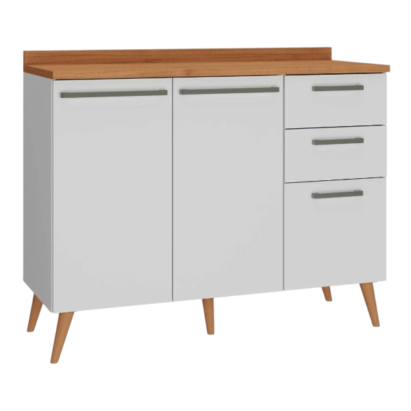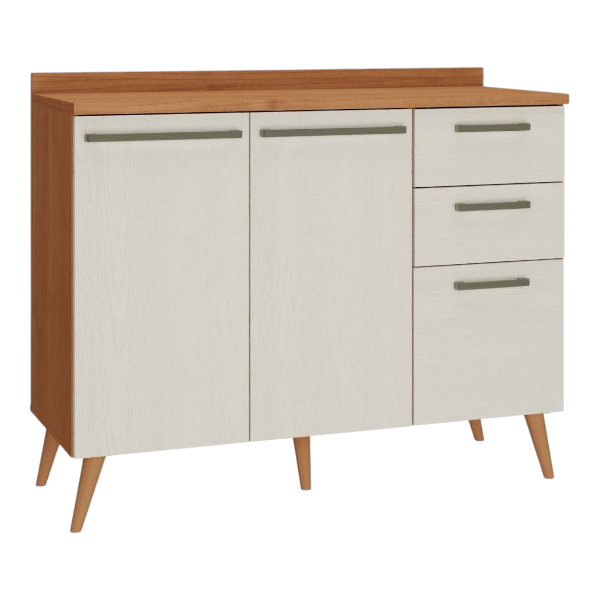 Bajo Mesada 120 Línea Zambia Código: 0000156-3801 Bajo mesada – 2 Puertas 3 Cajones – Dimensiones totales – Altura: 98 cm Ancho: 120 cm Profundidad: 47.3 cm – Materiales – MDP Colores: Blanco Cinamomo/ Marrón Arena