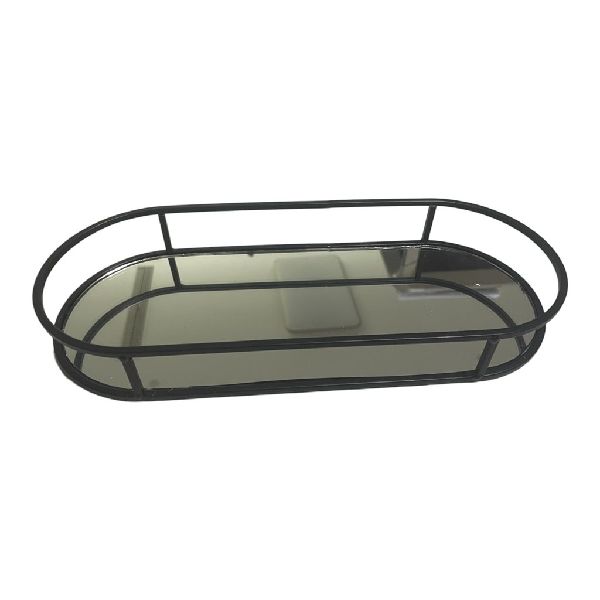 Bandeja Espejo Ovalada Metal Código: 4651896 Color: Negro Medida: 29x12x4 cm