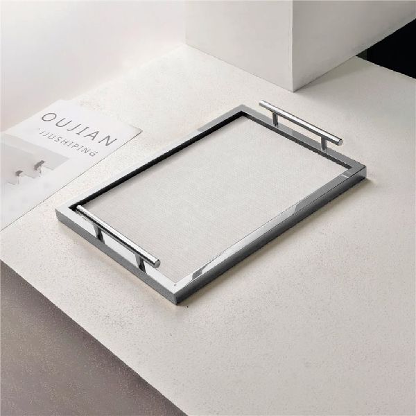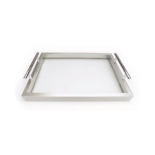Bandeja Vidrio Código: 4651825S Color: Plateado Material: Mdf / Vidrio Medida: 34x24x6 cm