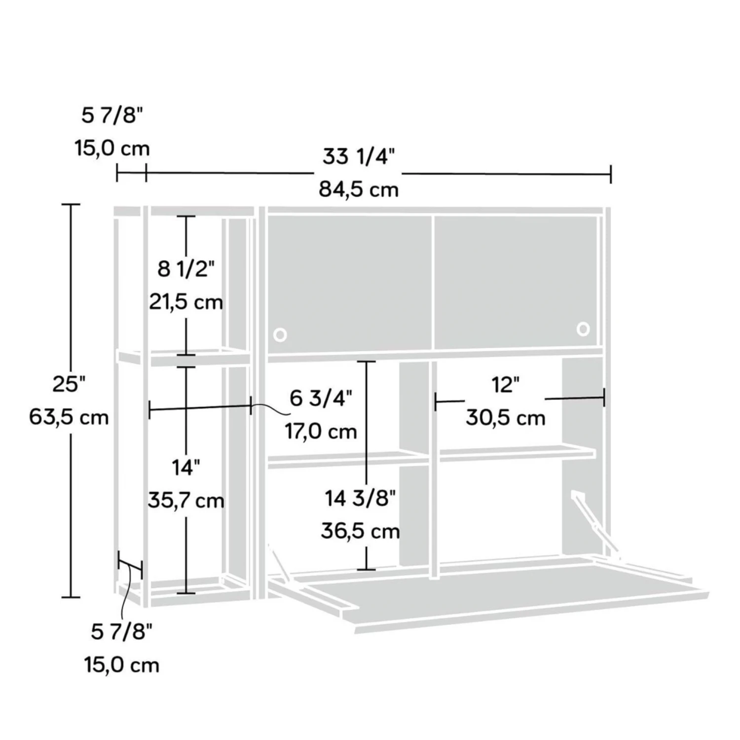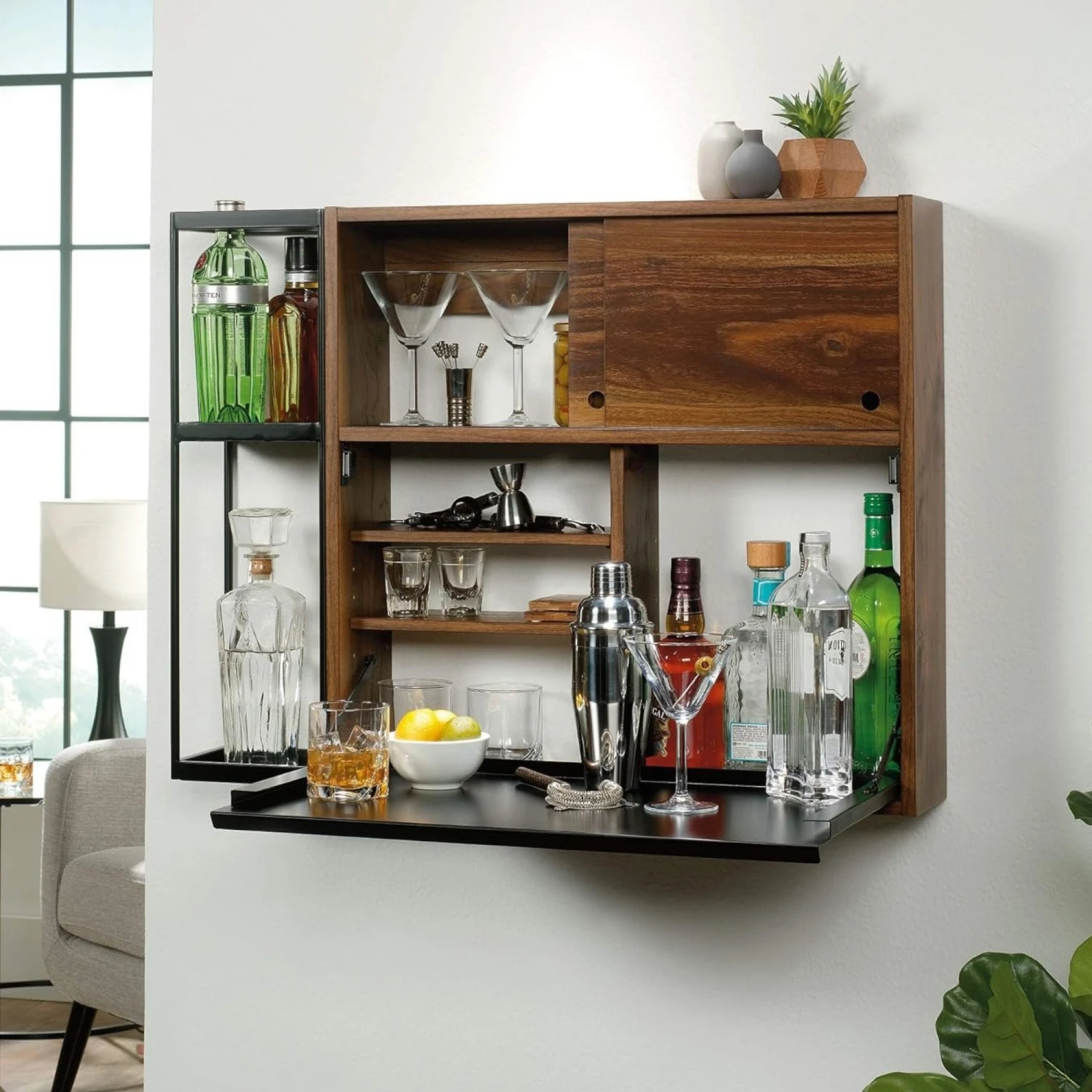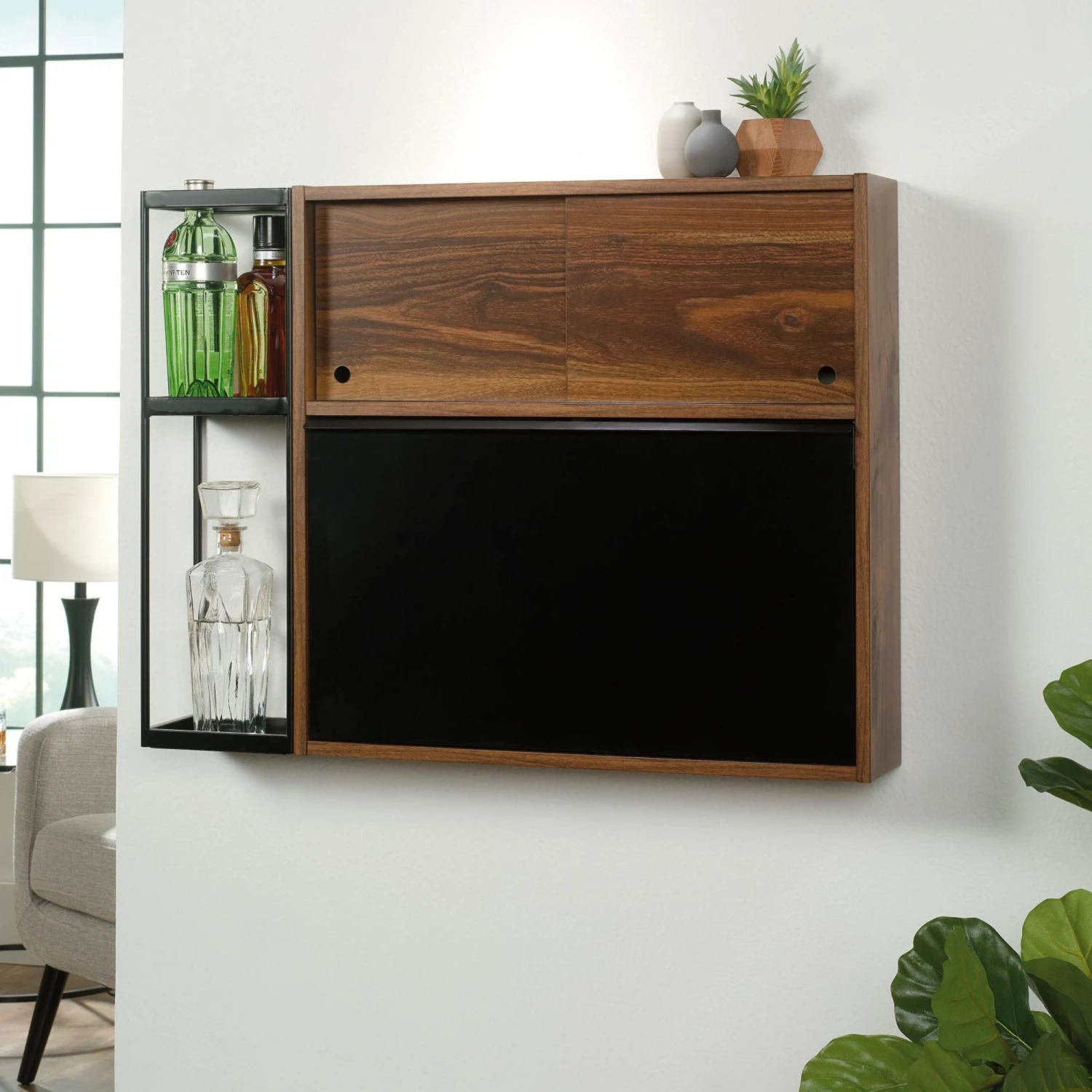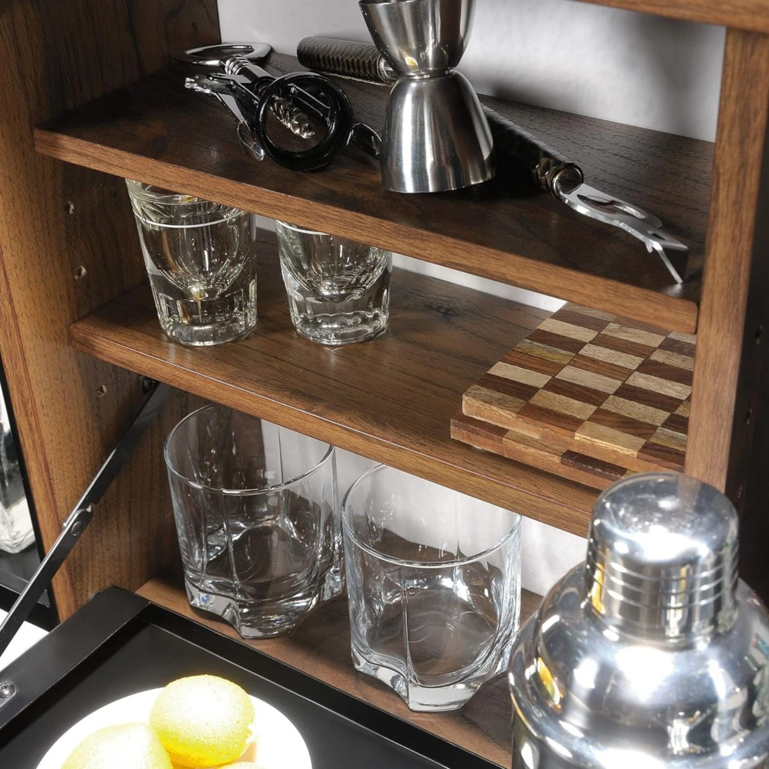 Bar Aéreo Código: 423322 Dimensiones totales – Altura: 63.5 cm Ancho: 84.5 cm Profundidad: 15 cm – Materiales – Madera de Ingeniería