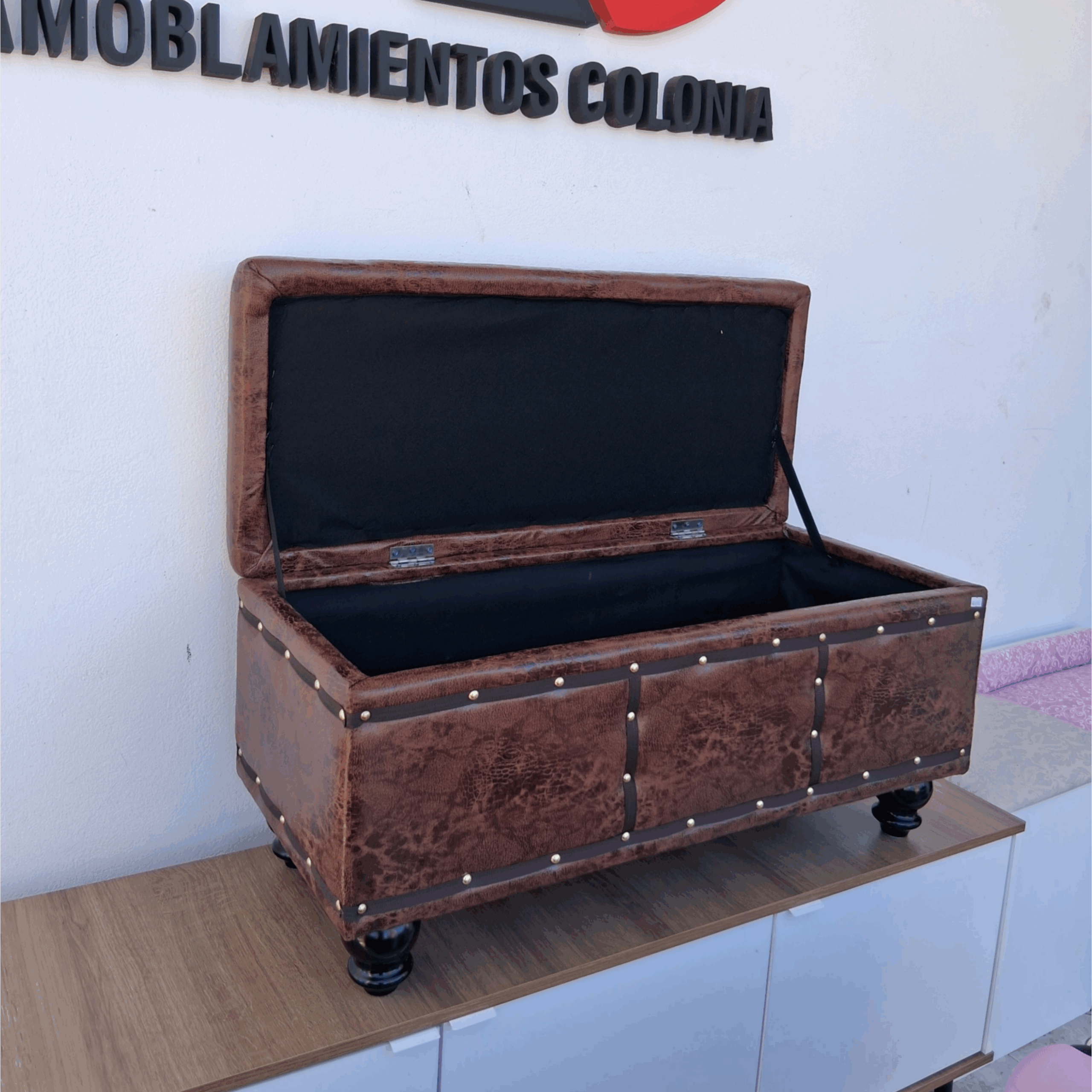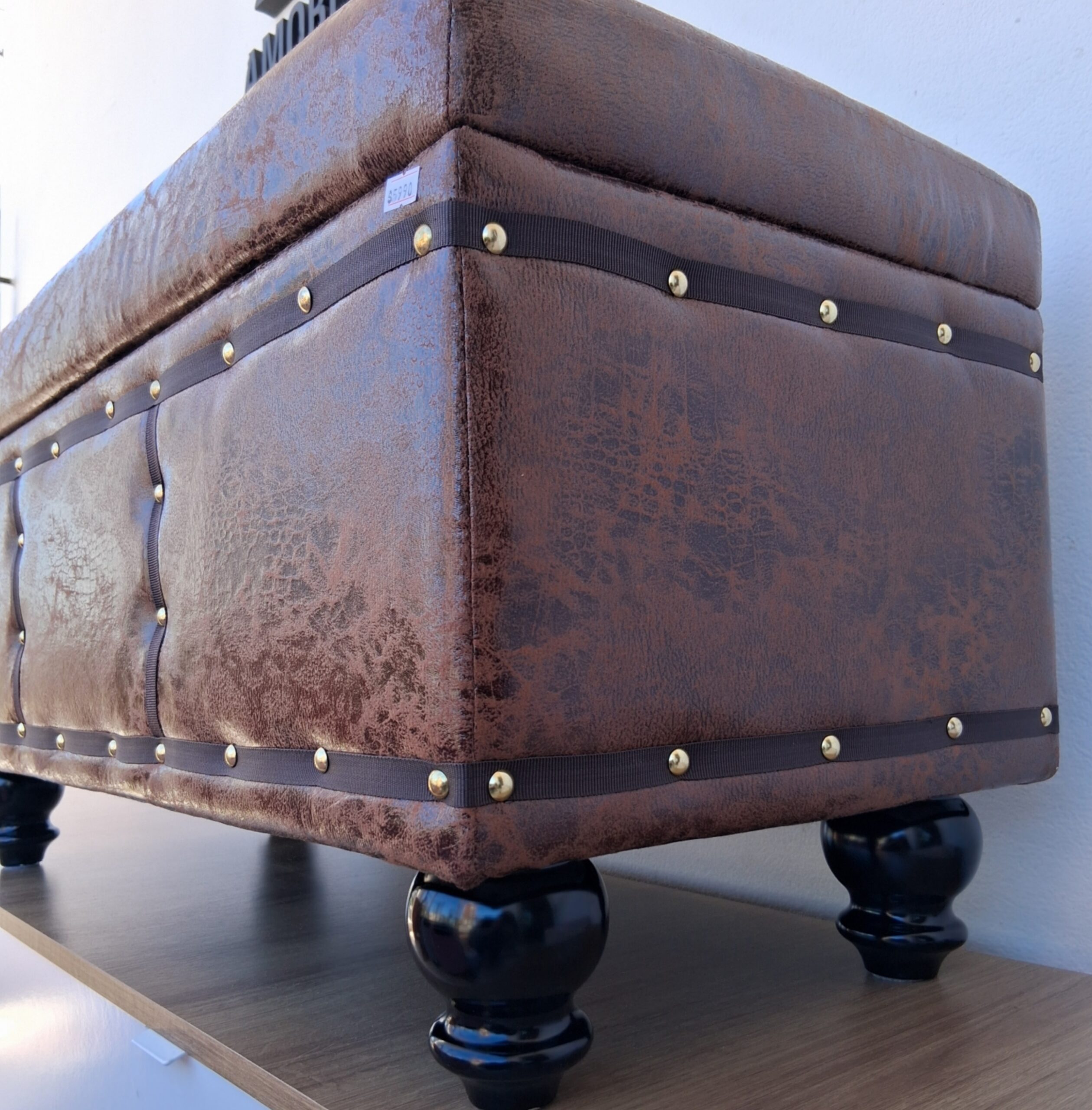 Baul De Madera Arthur Código: Arthur Color: Marrón Medidas: Altura: 43 cm Largo: 90 cm Material: Simil Cuero Apto para interior. Con tapa. Asiento Cómodo Amplio espacio para guardado