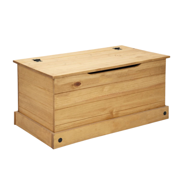 Baul Linea Mexicana Código: 2276 MEX026 Color: Natural Medidas: Alto: 44 cm Largo: 90 cm Profundidad: 48 cm Material: Madera Maciza