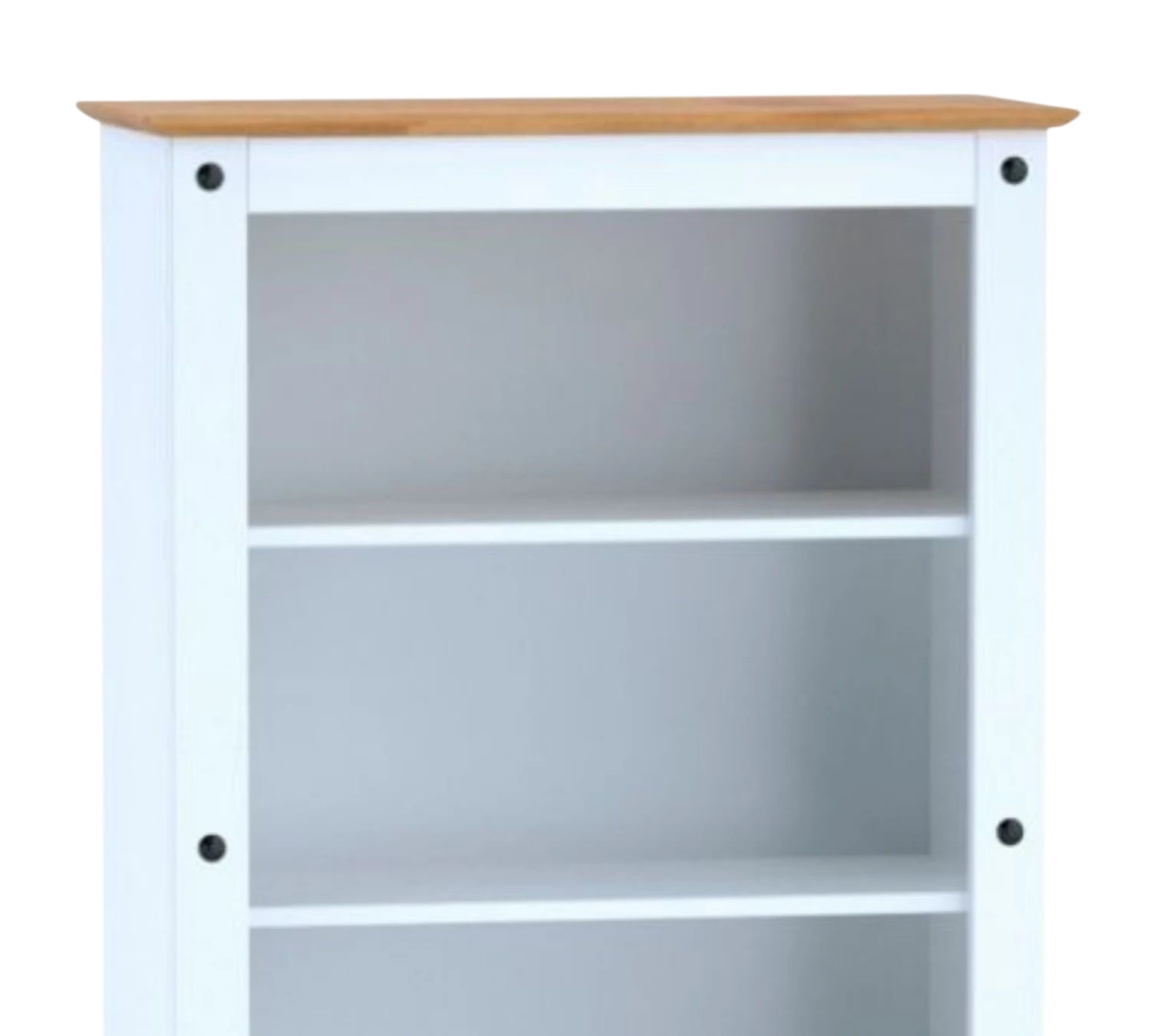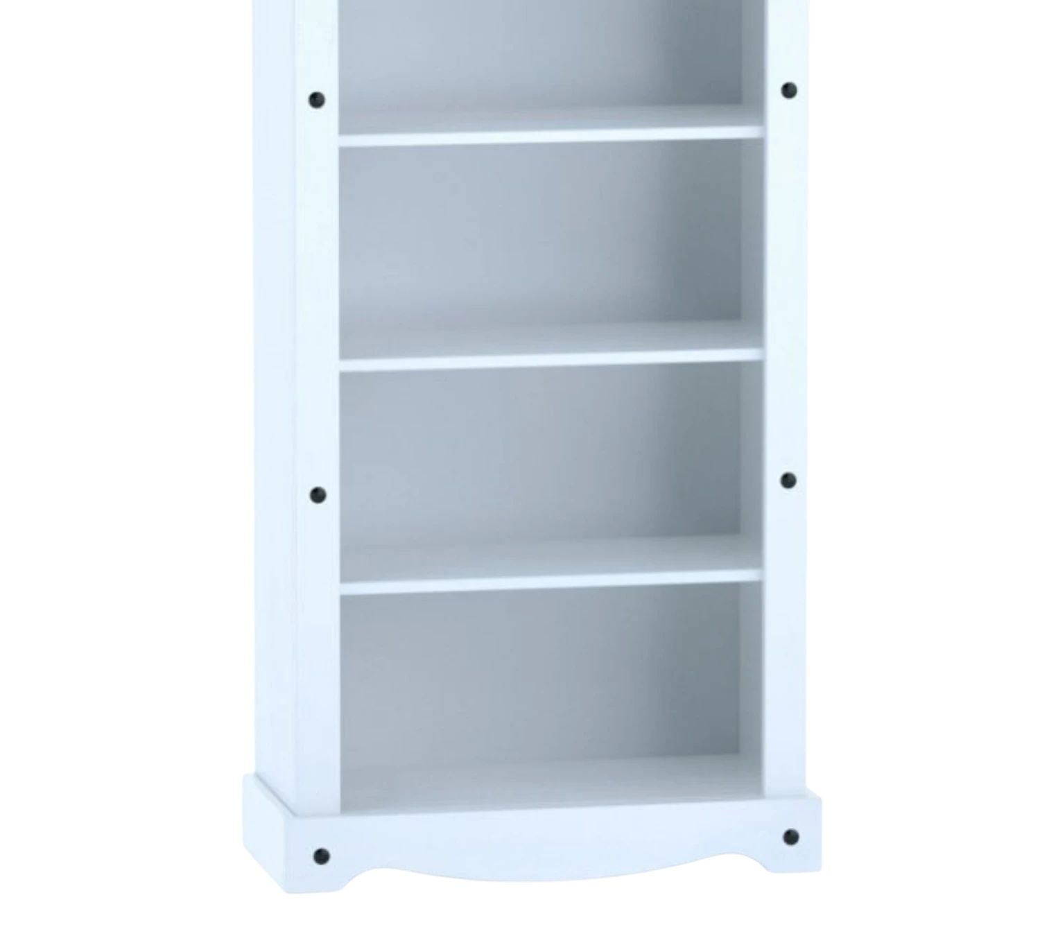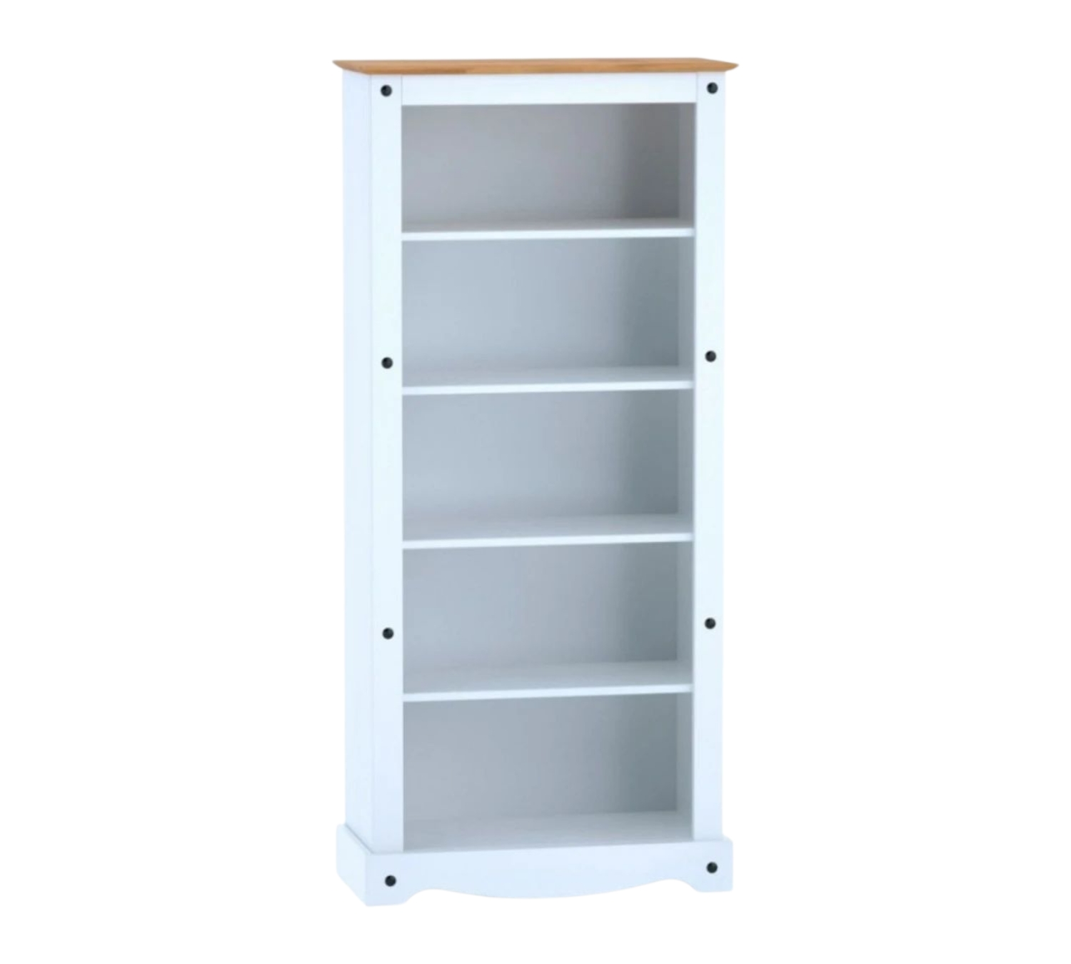 Biblioteca 5 estantes Linea Mexicana Código: MEX015 Material: MDF MEDIDAS: – Alto: 182 cm – Largo: 81 cm – Profundidad: 44 cm Color: Blanco