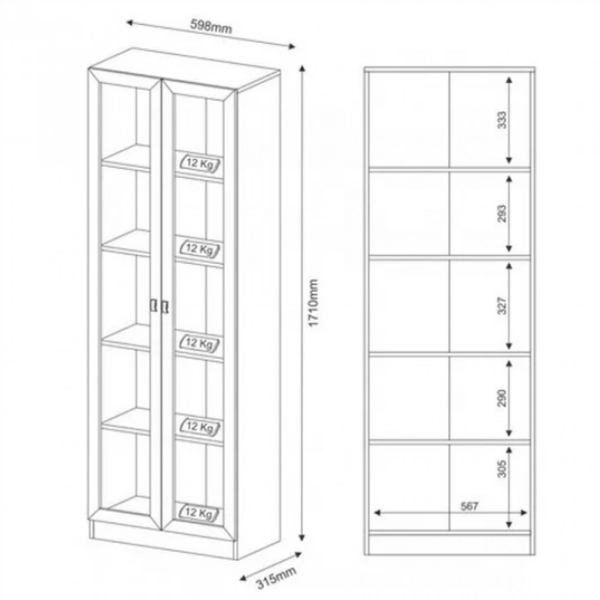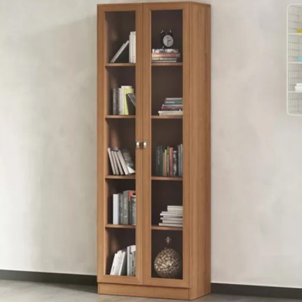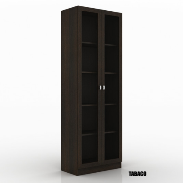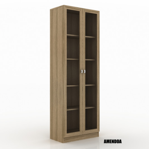 Biblioteca Armario Cristalero – 4115 2 puertas con varios estantes internos Puertas de vidrio Confeccionado en placa de MDP con terminación melaminica imitación madera Molduras a la vista Medidas: Alto 172 cm Ancho 60 cm Prof. 32 cm