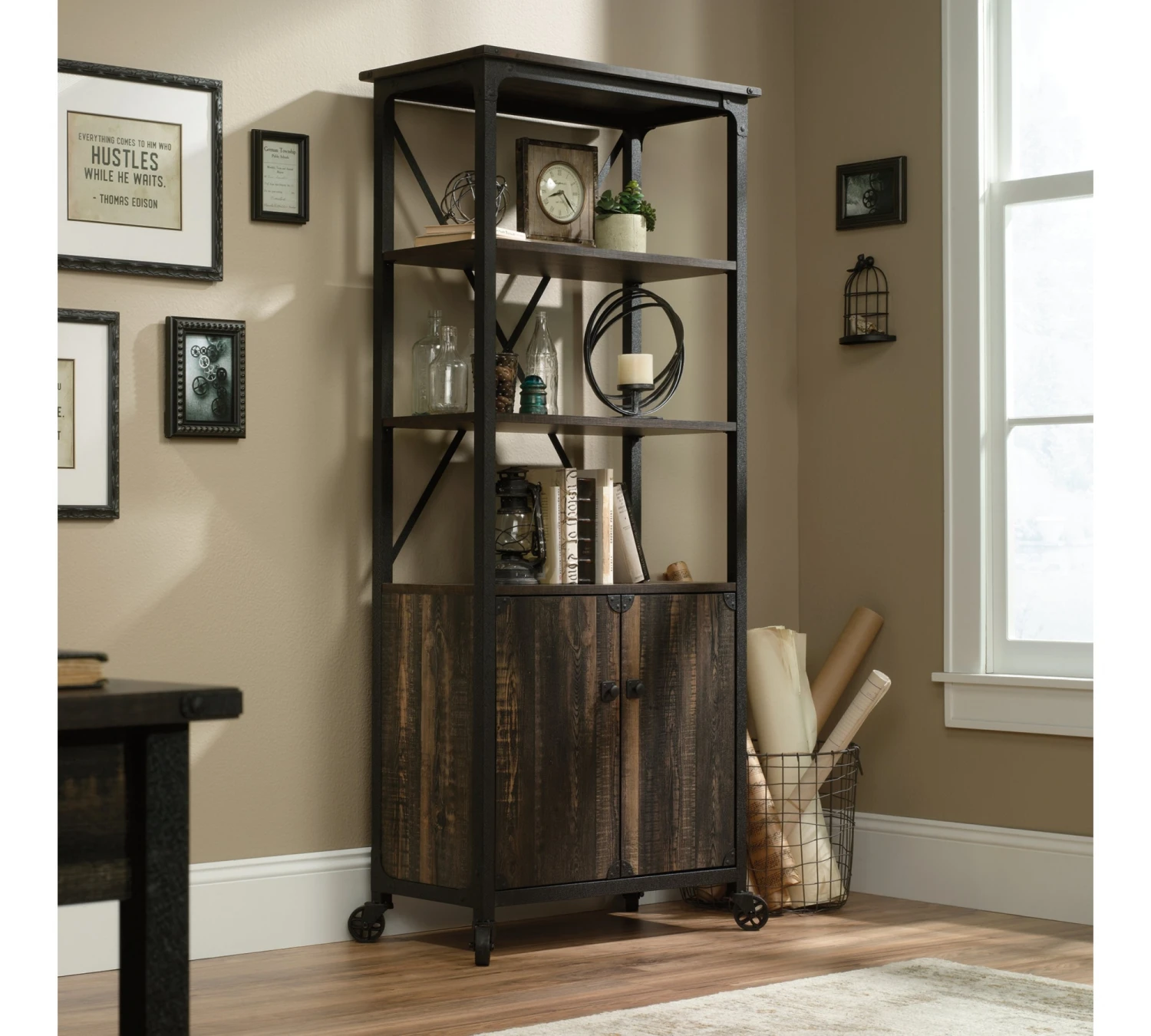 Biblioteca Con Puertas Linea Sauder Steel River Código: 423975 Dimensiones totales- Altura: 177.3 cm Ancho: 80.5 cm Profundidad: 43.4 cm