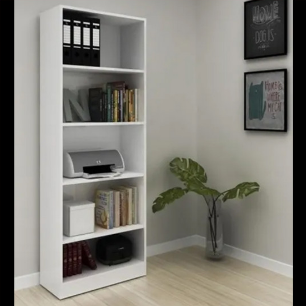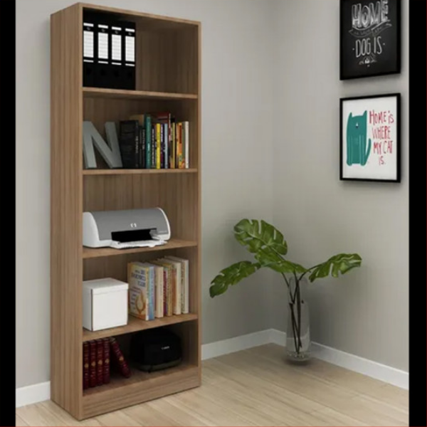 Biblioteca Estanteria – 4141 Confeccionada en placa de MDP de 15 mm con terminación melaminica 5 estantes de apoyo, 4 móviles Medidas: Alto 160 cm Ancho 60 cm Prof. 26 cm Color: Tabaco Blanco Amendoa Rustico
