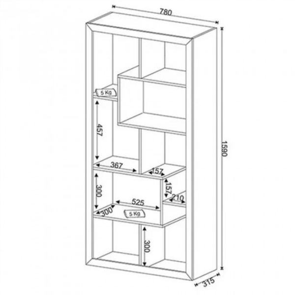 Biblioteca Estanteria Moderna – 1712 Confeccionada en placa de MDP de 15 mm Ideal para todo tipo de ambiente Su uso puede ser vertical u horizontalmente Diseño moderno Medidas: Alto 159 cm Largo 78 cm Prof. 32 cm