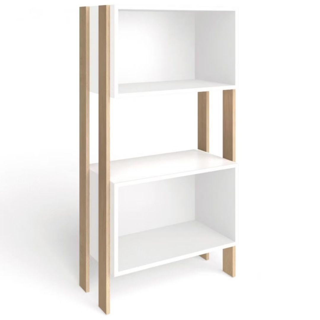 Biblioteca Estanterias Linea Retro Estanteria compacta de la linea retro, como espacio para lugares reducidos contiene 2 gavetas, 2 estantes Color: Blanco/Nature Alto: 1.14 Largo: 0.60 Profundidad: 0.30 Peso: 22.5kg
