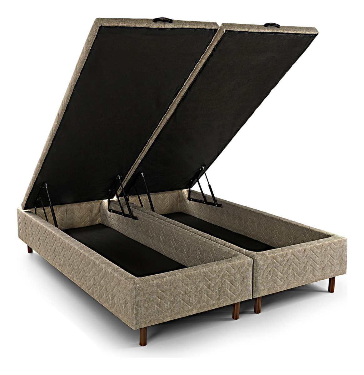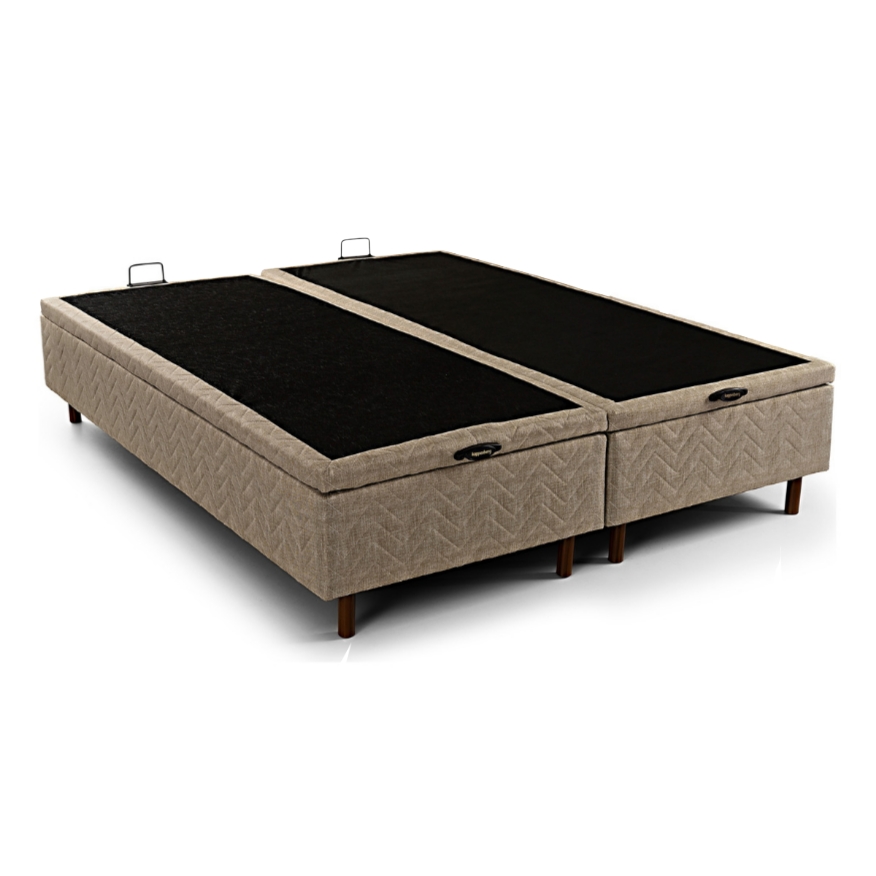 Box Baul Queen Premium Clor: Beige MEDIDAS : Largo: 198 cm – Ancho: 158 cm – Alto baúl s/patas: 30 cm – Alto baúl c/patas: 42 cm fabricada en madera maciza reforestada. Revestimiento superior de TNT Bandas laterales en lino gris