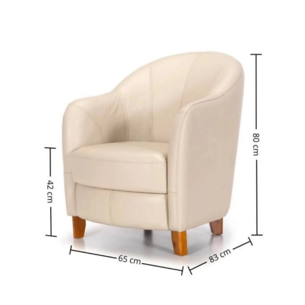 Butaca 100% Cuero Nova Código: 0000232-4083 Color: Arena Tapizado: 100% Cuero natural Ancho: 65 cm Profundidad: 63 cm Alto: 80 cm Alto de Asiento: 42 cm
