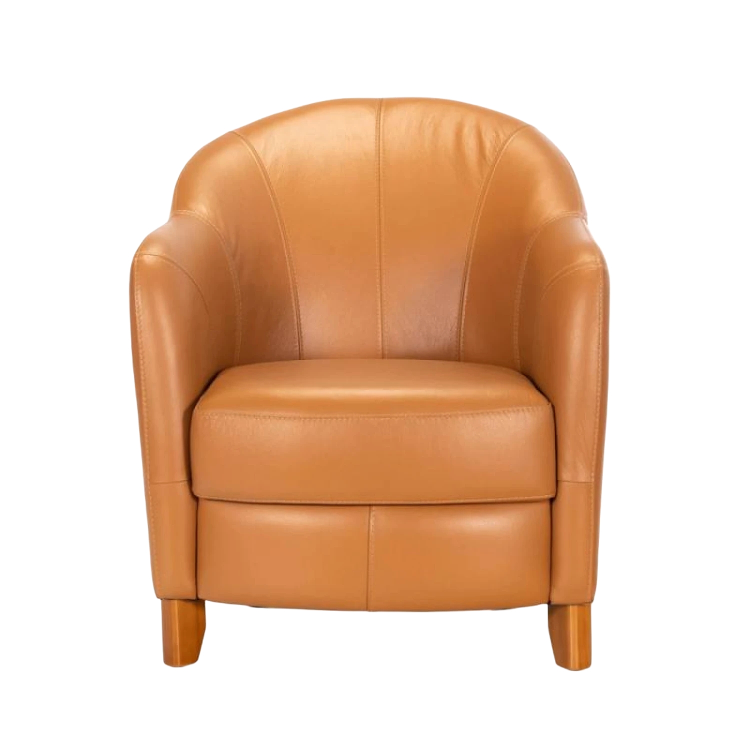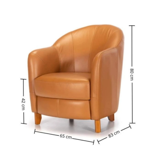 Butaca 100% Cuero Nova Código: 0000232-4084 Color: Camel Tapizado: 100% Cuero natural Ancho: 65 cm Profundidad: 63 cm Alto: 80 cm Alto de Asiento: 42 cm
