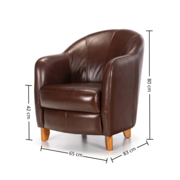 Butaca 100% Cuero Nova Código: 0000232-4081 Color: Caramelo Tapizado: 100% Cuero natural Ancho: 65 cm Profundidad: 63 cm Alto: 80 cm Alto de Asiento: 42 cm