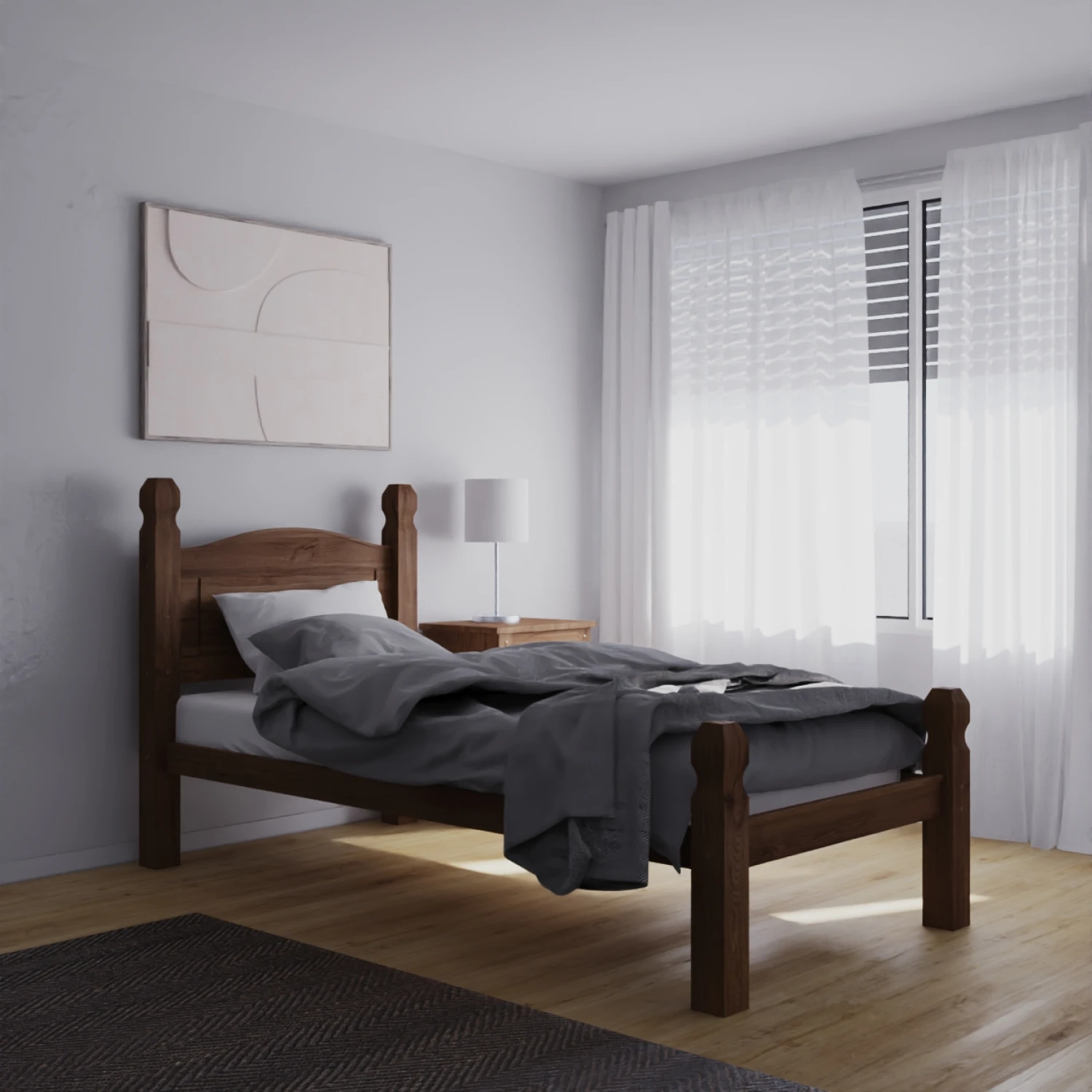 Cama 1 Plaza Línea Mexicana Código: Mex023 Color: Nogal Medidas: Alto: 116 cm Largo: 206 cm Profundidad: 98 cm
