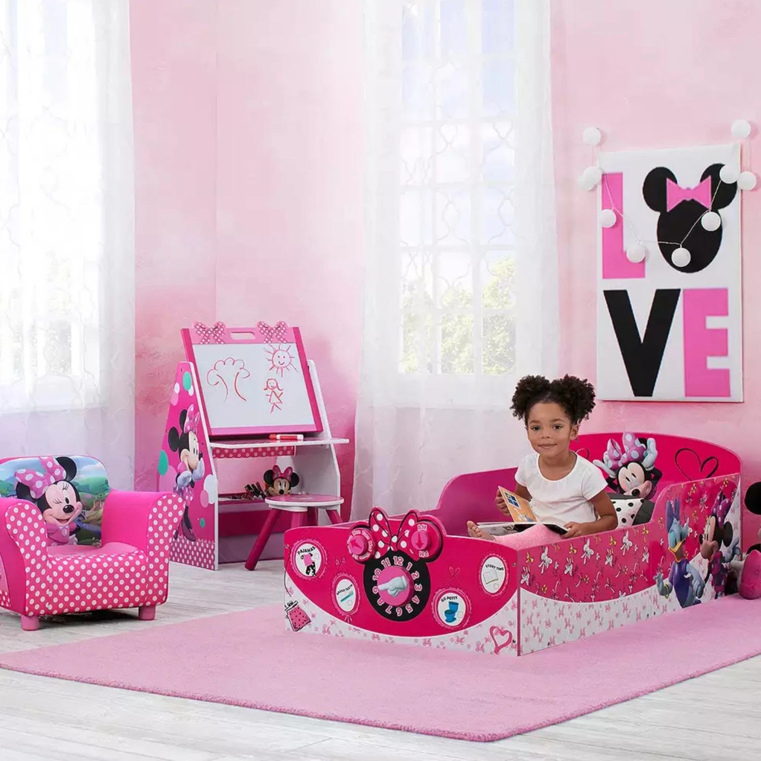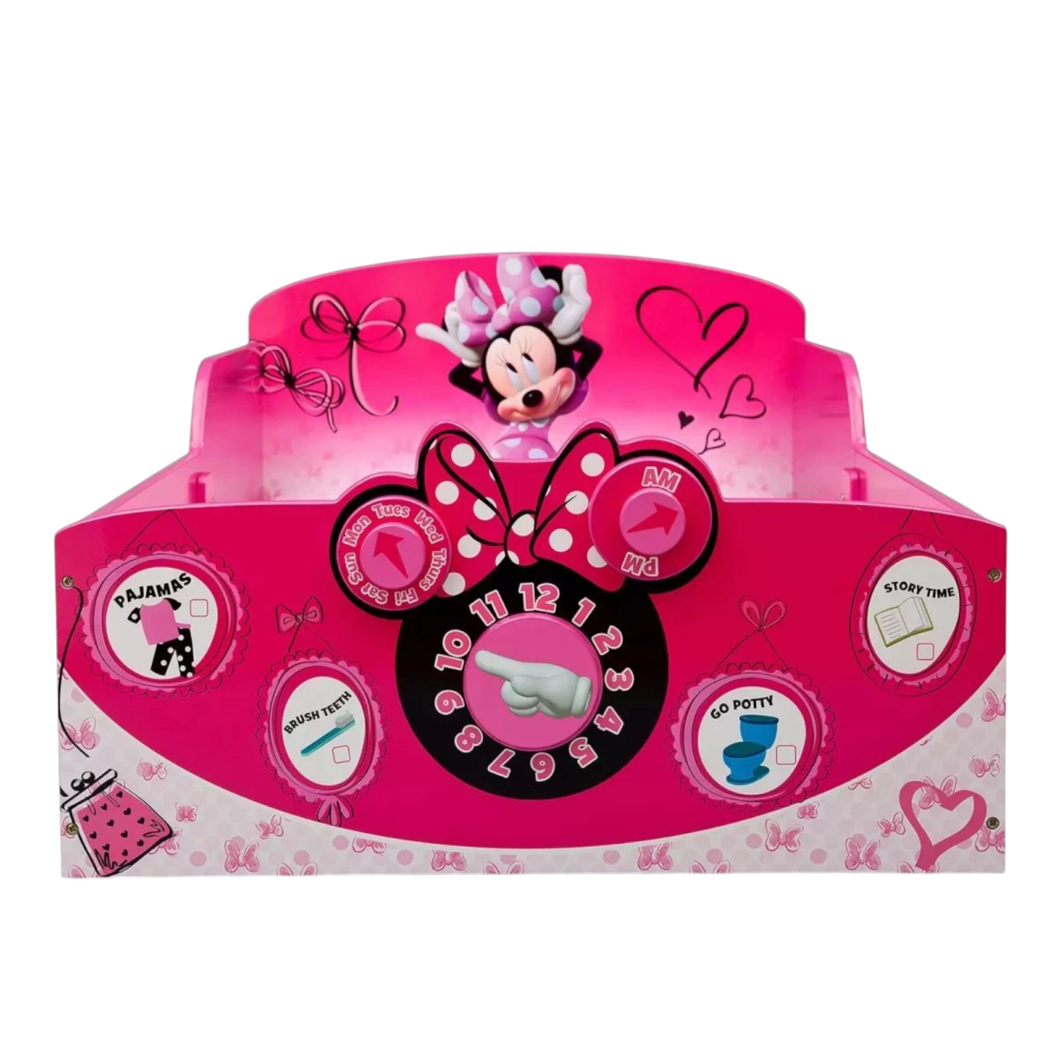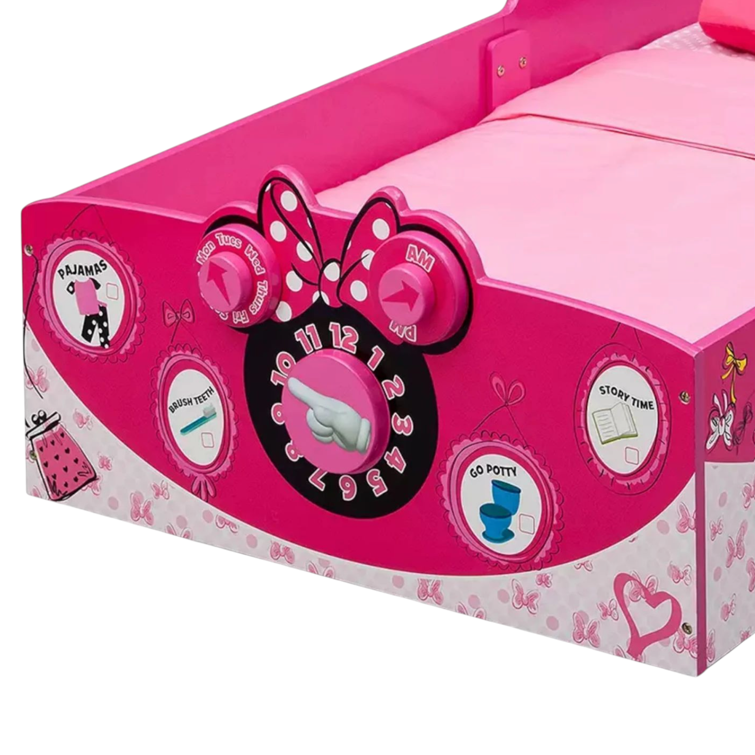 Cama De Disney Minnie Código: BB86930MN-1061 Medida: Largo: 1.35 m Ancho: 0.73 m • El reloj interactivo con rueda giratoria ayuda a aprender y que los días y la hora sea divertido • Madera MDF durable