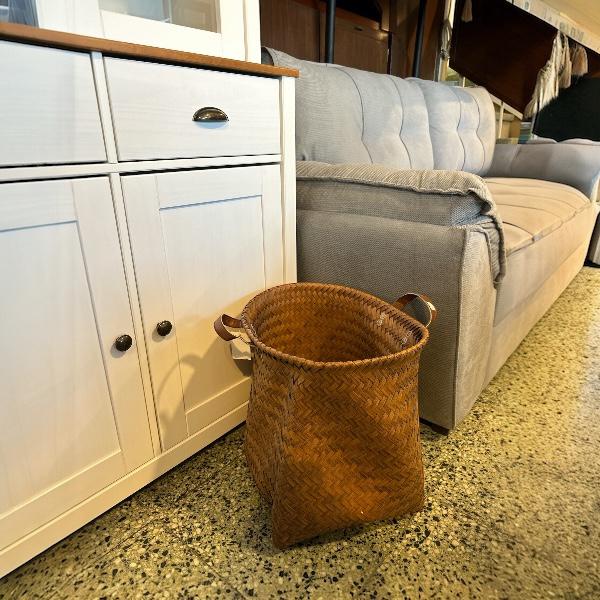 Canasto De Mimbre Y Manijas De Cuero Color: Marrón Medidas: 38 × 40 cm Materiales: Miembre / Cuero Canasto De Almacenamiento De Miembre Para Artículos Diversos. Para Cocina, Baño, Dormitorio, Sala De Estar, Cocina.