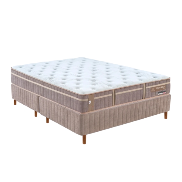 Conjunto Sommier Queen Bloom Código: 4467 4418 – Dimensiones totales – Altura: 30 cm Ancho: 158 cm Profundidad: 198 cm Soporta: 250 kg 2 Bases Material: Normablock Pro® Suporte 250kg Trizone Support