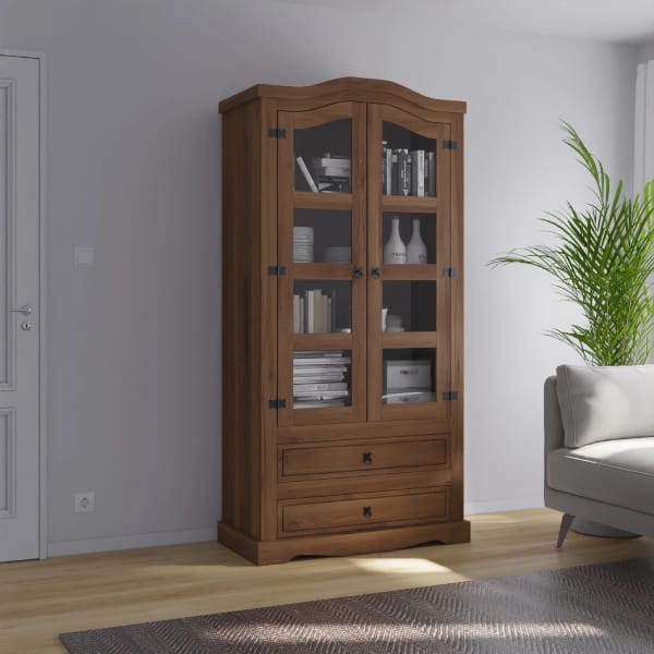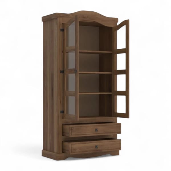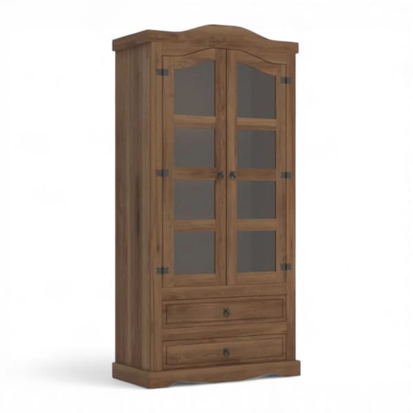 Cristalero 2P+2C Linea Mexicana Código: Mex007 Color: Nogal Medidas: Alto: 187.5 cm Largo: 99.0 cm Profundidad: 43.5 cm Fabricado en Madera Maciza de Pino.