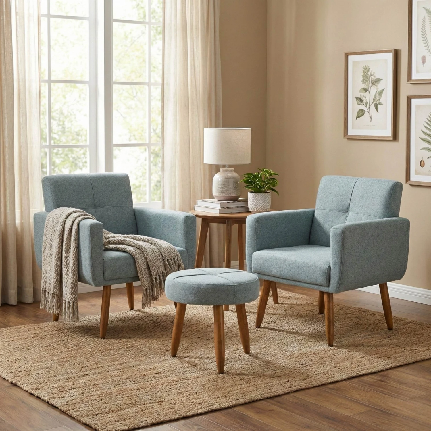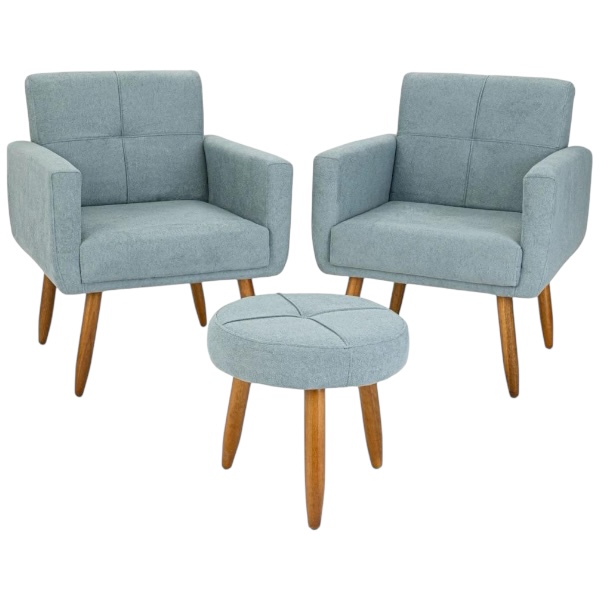 Dos Poltronas Havana + Puff Celeste