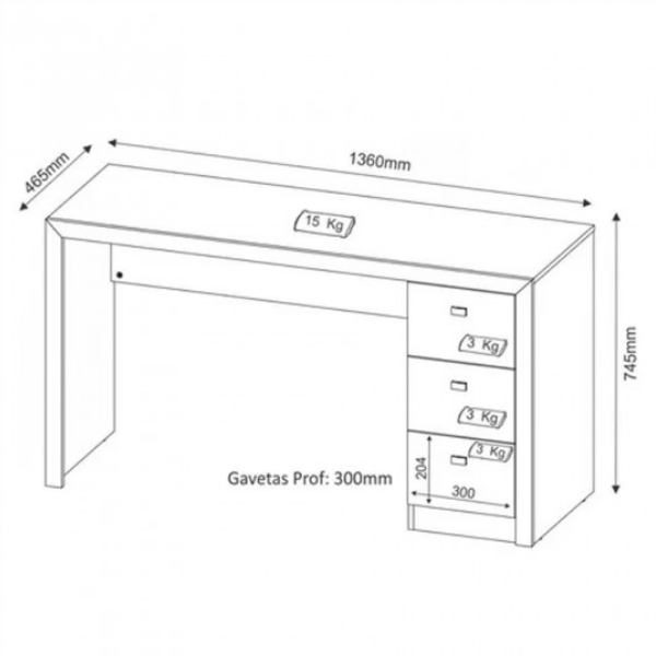Escritorio 3 Cajones 4102 Blanco Confeccionado en placa de MDP con terminación melaminica imitación madera Molduras a la vista Excelente calidad 3 cajones con rieles metálicos Medidas: Alto 75 cm Largo 136 cm Prof. 47 cm