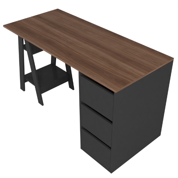 Escritorio con Caballetes y Cajones Negro/Castaño