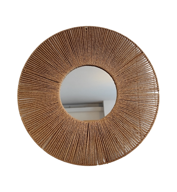 Espejo De Pared De Mimbre Color: Marrón Medida: 60 cm Material: Mimbre Ideal para varios espacios como sala de estar, baño, dormitorio y entrada.