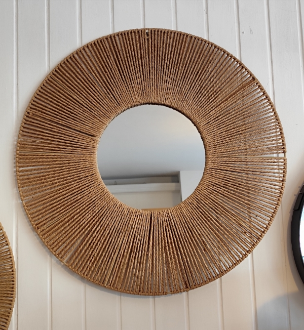 Espejos De Pared De Mimbre Color: Marrón Medida: 70 cm Material: Mimbre Ideal para varios espacios como sala de estar, baño, dormitorio y entrada.