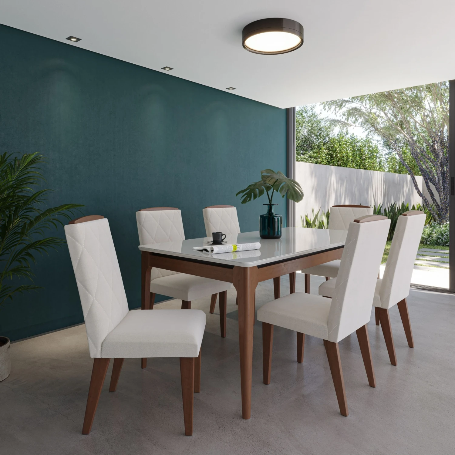 Mesa Addar 1.6 Linea Monaco 3628 Código: 3628 Dimensiones totales – Altura: 77.2 cm Ancho: 160 cm Profundidad: 90 Materiales: Tapa en MDF + VIDRIO TEMPLADO Patas en Madera maciza Acabado en Barniz PU