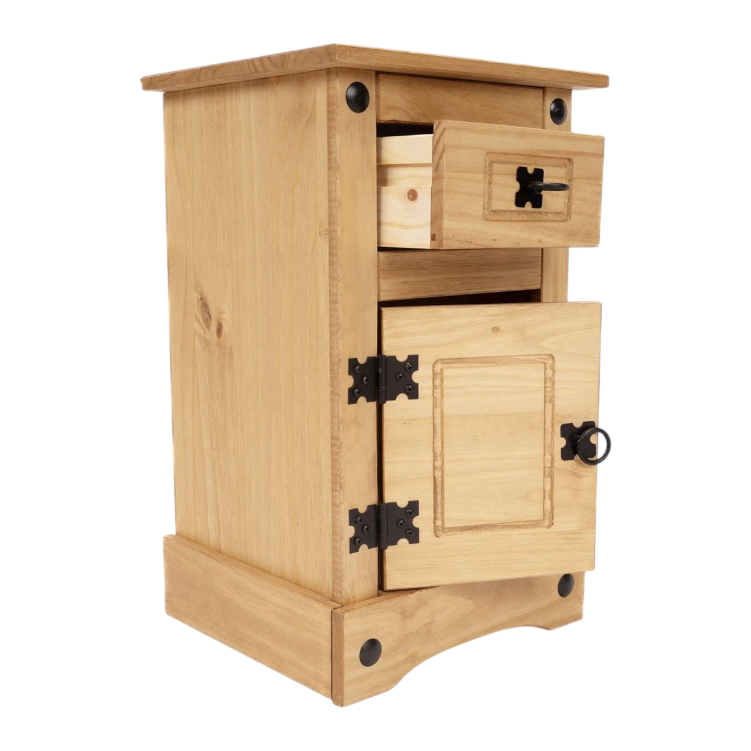 Mesa De Luz 1P + 1C Linea Mexicana Natural 2887 Código: 0000175-MEX034NA 2887 Color: Natural – Dimensiones- Alto: 58 cm Ancho: 35 cm Profundidad: 32 cm – Materiales – Madera Maciza