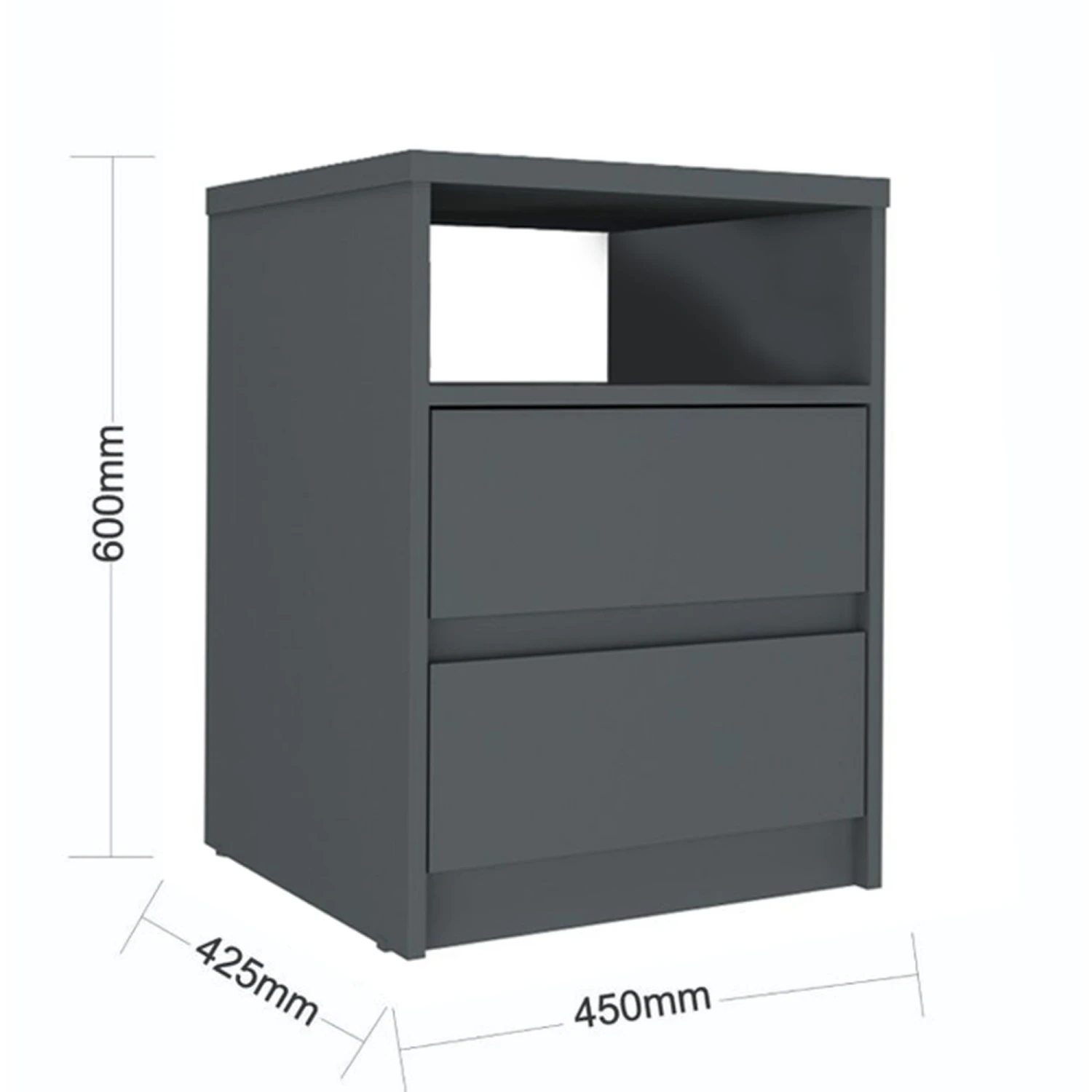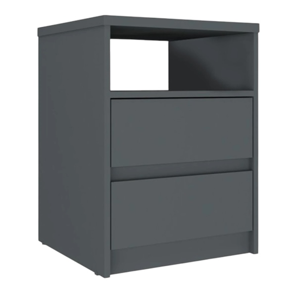 Mesa de Luz 2 Cajones South Plus Grafito 102732 Código: 0000259-102732- 4133 Mesa de Luz 2 Cajones SOUTH Plus – Dimensiones totales – Altura: 60 cm Ancho: 45 cm Profundidad: 42.5 cm – Materiales – 100% MDF