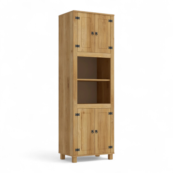 Modular 4 Puertas Linea Mexicana Código: Mex064 Color: Natural Dimensiones totales – Altura: 208.4 cm Ancho: 70 cm Profundidad: 49.5 – Materiales – Madera Maciza MDF