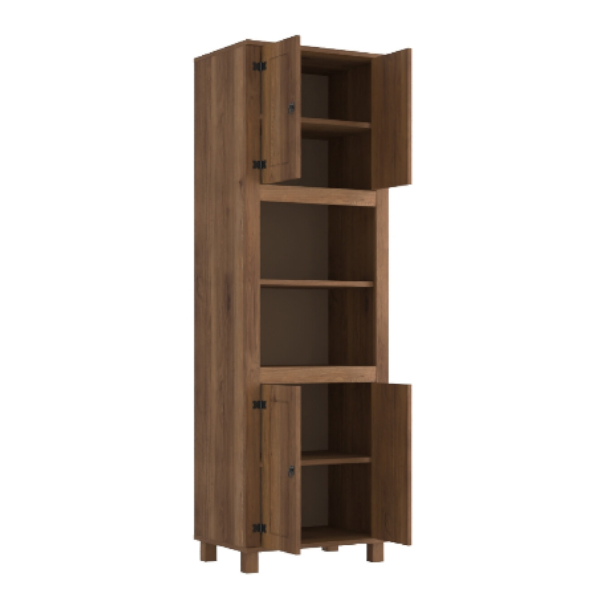 Modular 4 Puertas Linea Mexicana Código: Mex064 Color: Nogal Dimensiones totales – Altura: 208.4 cm Ancho: 70 cm Profundidad: 49.5 – Materiales – Madera Maciza MDF