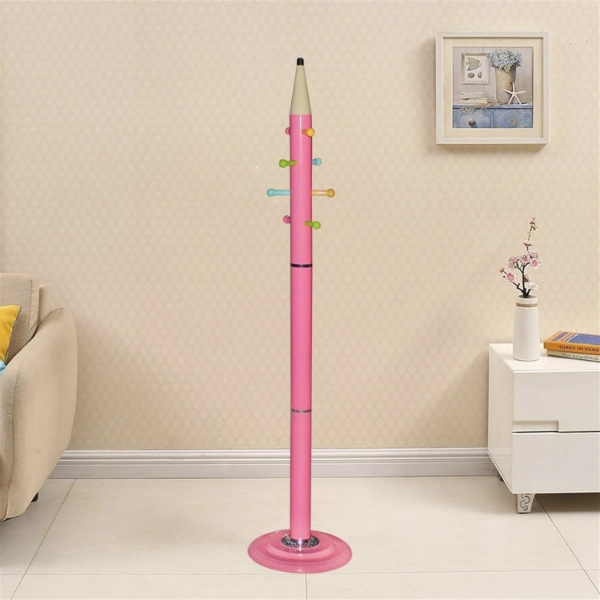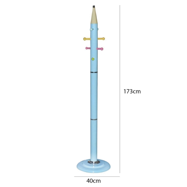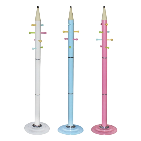 Perchero Lápiz De Metal Medida: 1,63 m x 0,40 m de diámetro Colores: Rosado, Celeste y Blanco Trae 8 ganchos Diseño lápiz, súper divertido para decorar espacios.