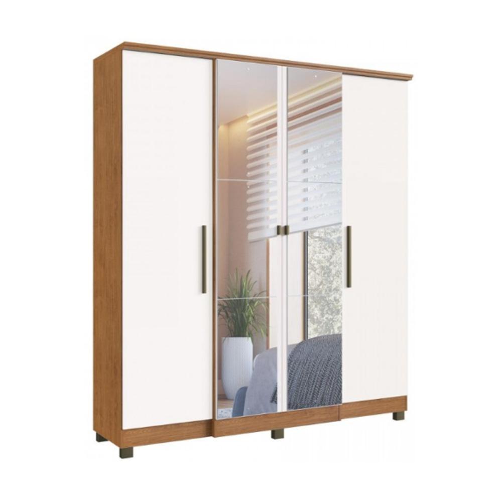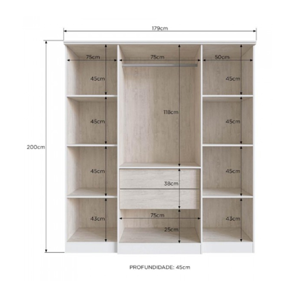 Placard Miami Nogueira / Off Withe Código + Color: 25040.72E Nogueira / Off Withe Medidas: Alto: 200cm Largo: 1,79cm Prof.: 45cm Características: 4 Puertas 3 Cajones internos, con Espejo