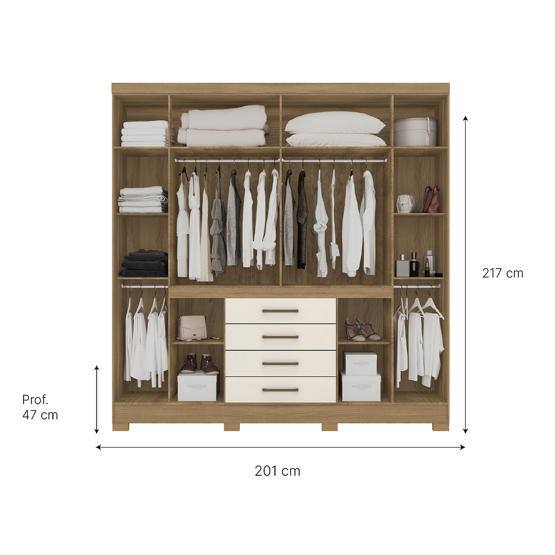 Placard New Realce Almendra/Off White Código + Color: 84020-140 Amendola / Off Withe Medidas: Ancho: 201 cm Alto: 2,17 cm Profundidad: 47 cm