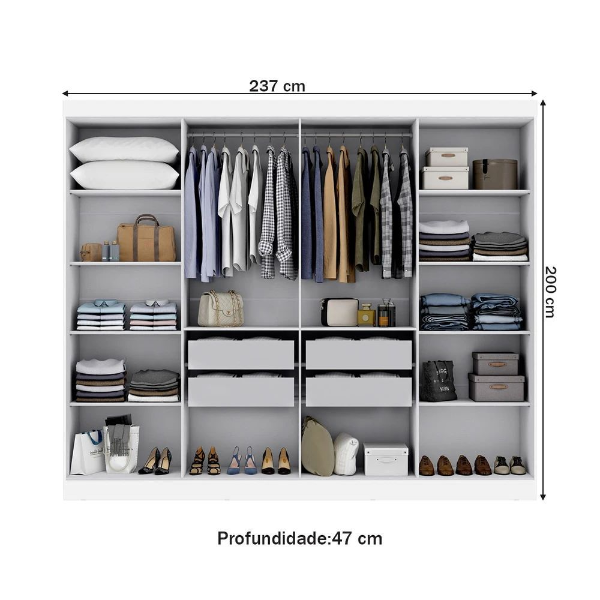 Placard Paris 8 Puertas Blanco ROPERO 8 PUERTAS BATIENTES 4 CAJONES Y 14 ESTANTES NOMBRE: PARIS CODIGO: 5506-1E COLOR: BLANCO 8 PUERTAS BATIENTES Alto: 200CM Largo: 237CM Profundidad: 47CM