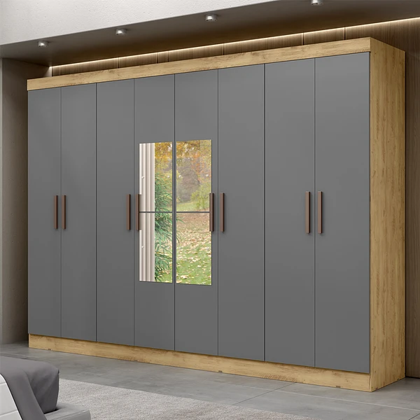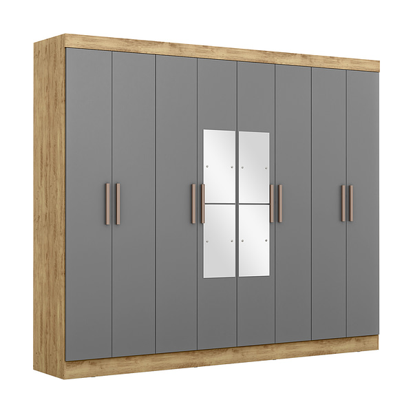 Placard Paris 8 Puertas ROPERO 8 PUERTAS BATIENTES 4 CAJONES Y 14 ESTANTES NOMBRE: PARIS CODIGO: 5506-57E COLOR: CAPUCCINO/GRIS 8 PUERTAS BATIENTES Alto: 200CM Largo: 237CM Profundidad: 47CM