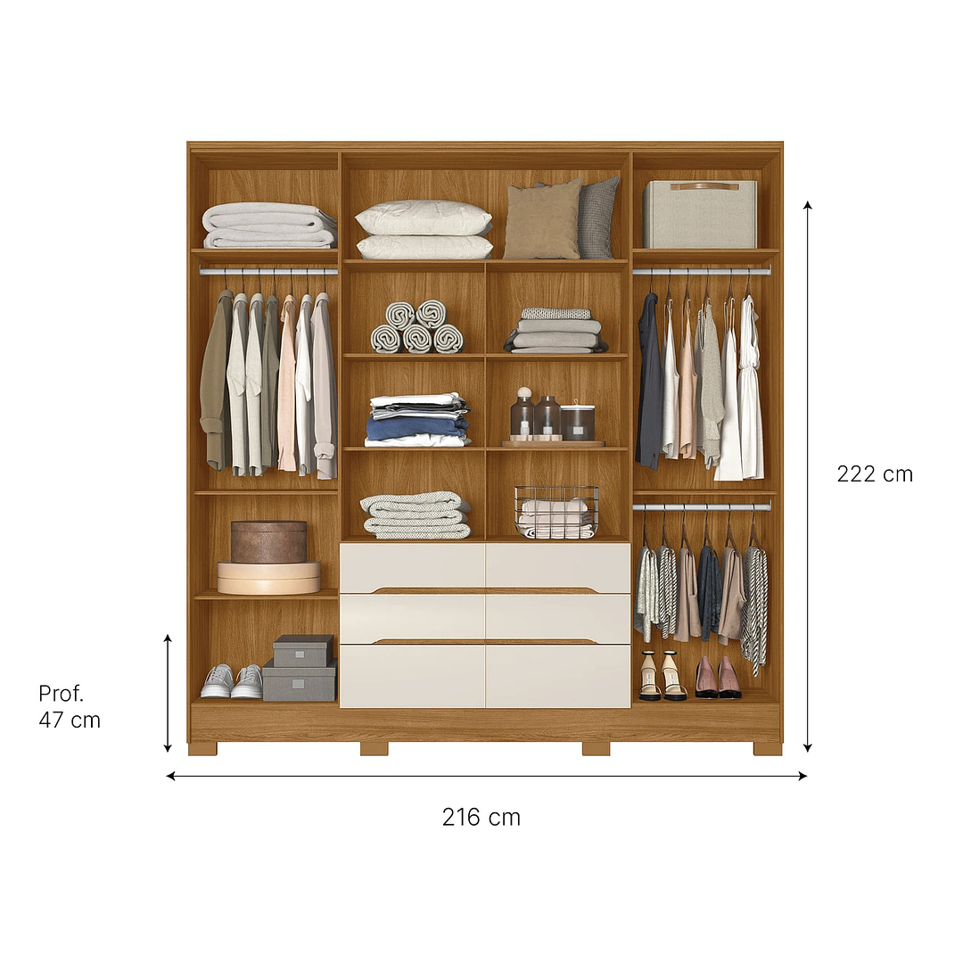 Placard San Francisco Carvallo/Fendi Código: 66043.7E Color: Carvalho / Fendi Medidas: Alto: 222 cm Ancho: 216 cm Profundidad: 47 cm