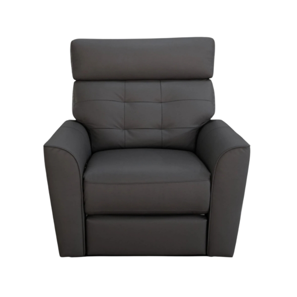 Poltrona Reclinable Eléctrica 100% Cuero Aurora Código: 0000357-4449 Color: Gris Oscuro -Medidas- Alto: 106 CM Ancho: 88 CM Profundidad: 100 CM – Materiales – 100% Cuero
