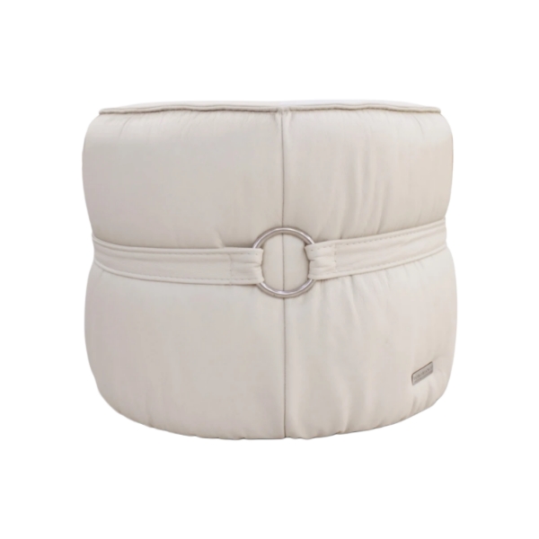 Puff 100% Cuero Ava Código: 0000358-4457 Color: Beige Medias: Alto: 40 cm Diámetro: 50 cm 100% cuero