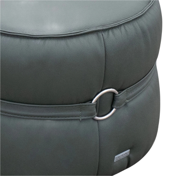 Puff 100% Cuero Ava Código: 0000358-4444 Color: Gris Medias: Alto: 40 cm Diámetro: 50 cm 100% cuero