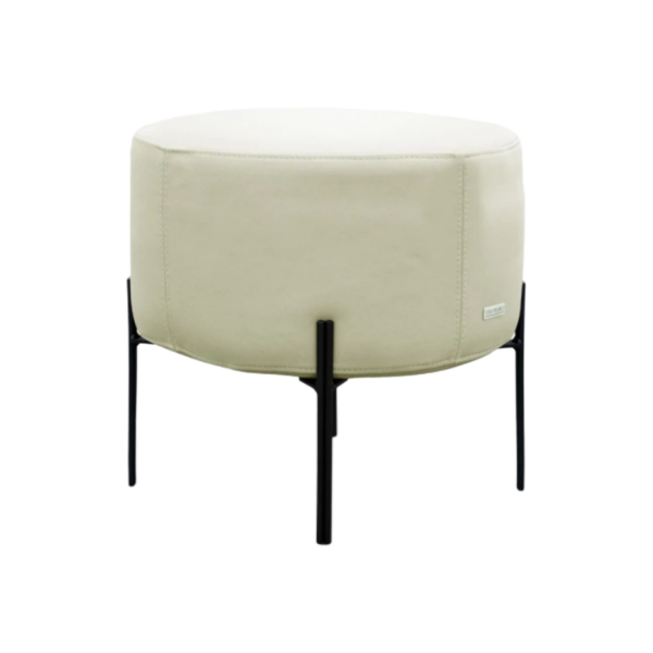 Puff 100% Cuero Mia Código: 0000356-4463 Color: Beige -Medidas- Alto: 46 CM Diámetro: 50 cm – Materiales – 100% Cuero